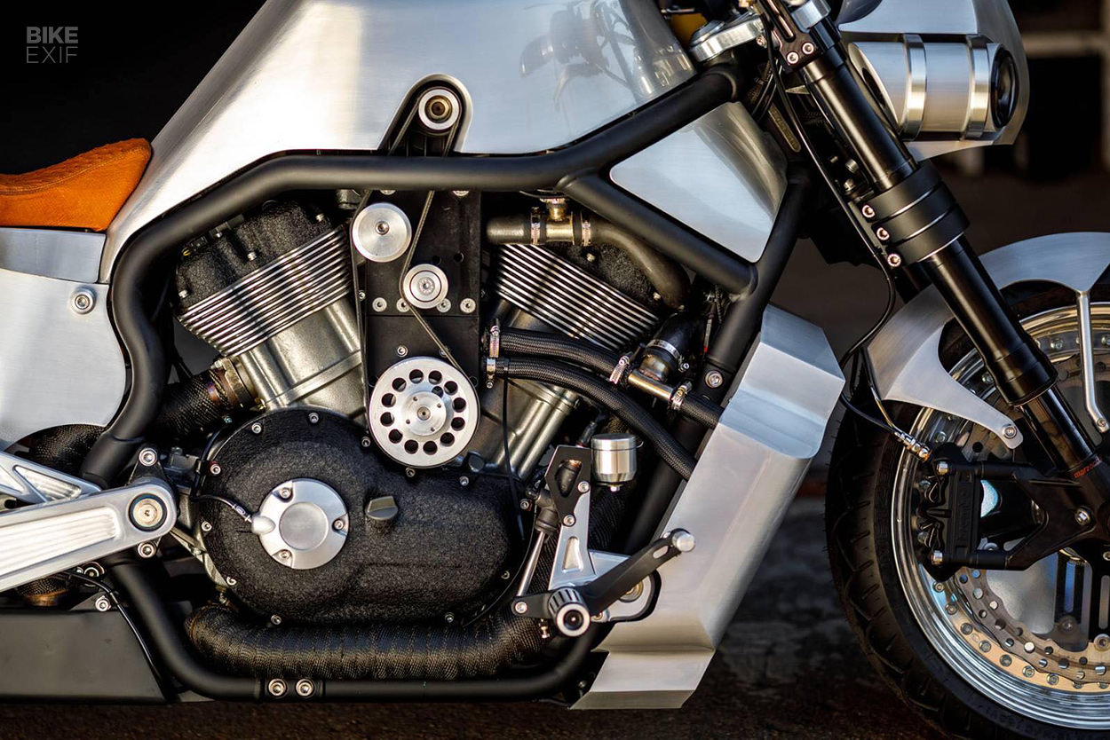 在車身右側的機械增壓套件占據了原本的水泵位置,因此在HARLEY-DAVIDSON V-Rod的散熱氣後方增加了一組電子水泵。設計人員也重新設計了進氣口,增加鍊條轉換,並且安裝了Thunder Max ECU來監控並調整車輛,HARLEY-DAVIDSON V-Rod的Revolution引擎原廠擁有115匹馬力,足敷使用的狀態下決定不對動力進行升級。