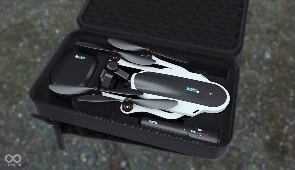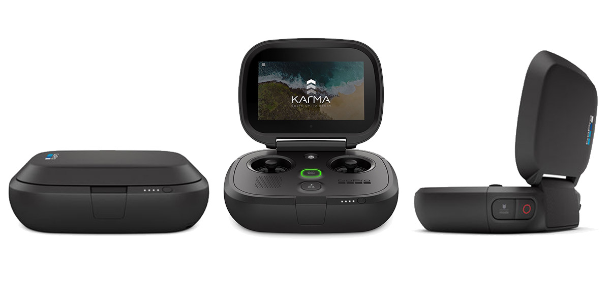 Karma空拍機使用四軸結構設計,最遠操控距離達1km,飛行極速約15m/s,可持連續飛行20分鐘,重量約1公斤,起落架與四軸臂皆可收折,收折後尺寸為365.2 x 224.3 x 89.9mm,搭配專用收納盒攜帶非常方便,還有一點相當貼心,面對容易受損的空拍機,GoPro將各部分組件模組化,若不慎墜機,便可自行維修(零件官網有賣)。