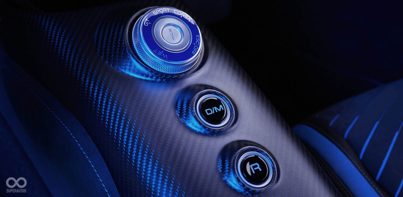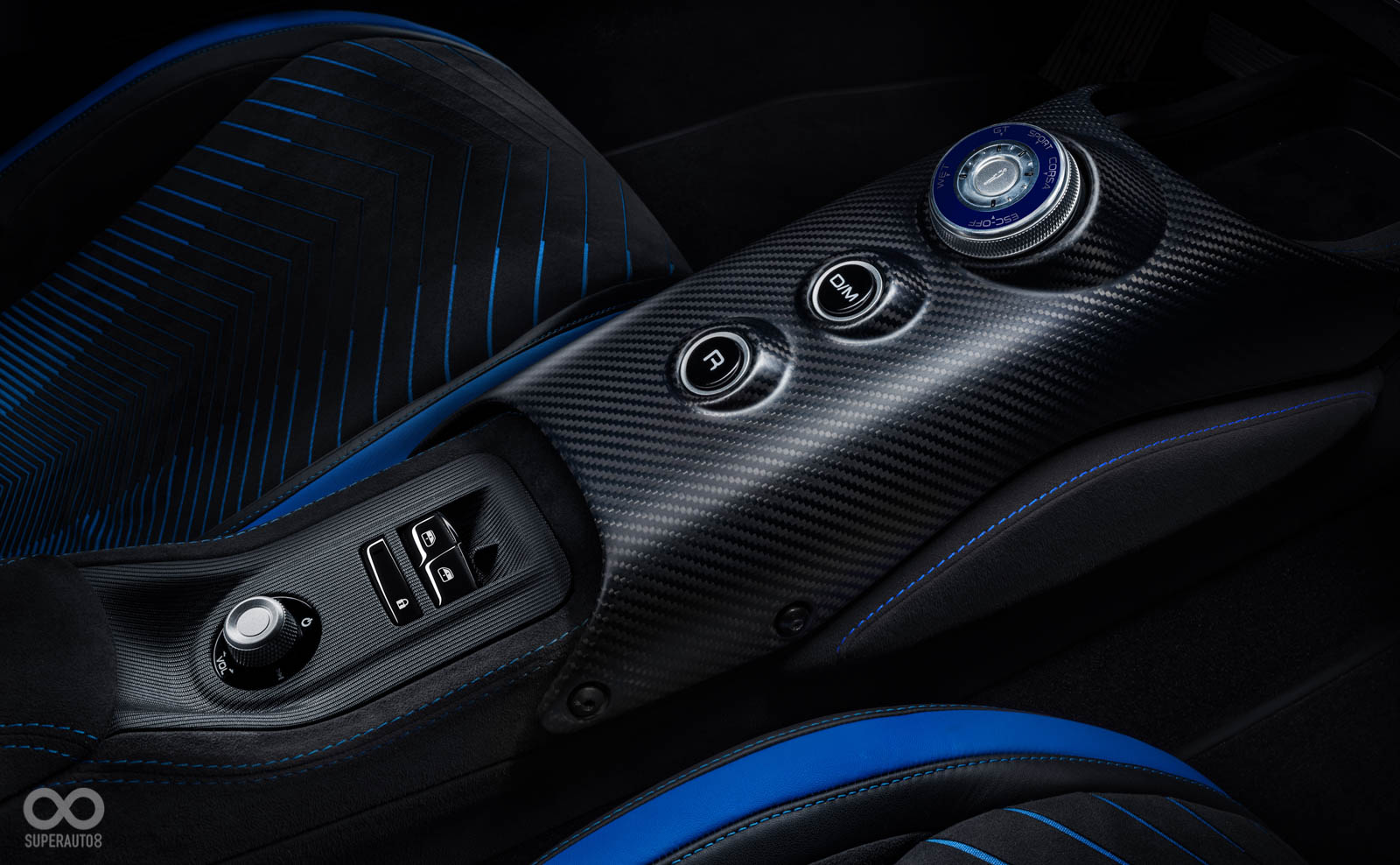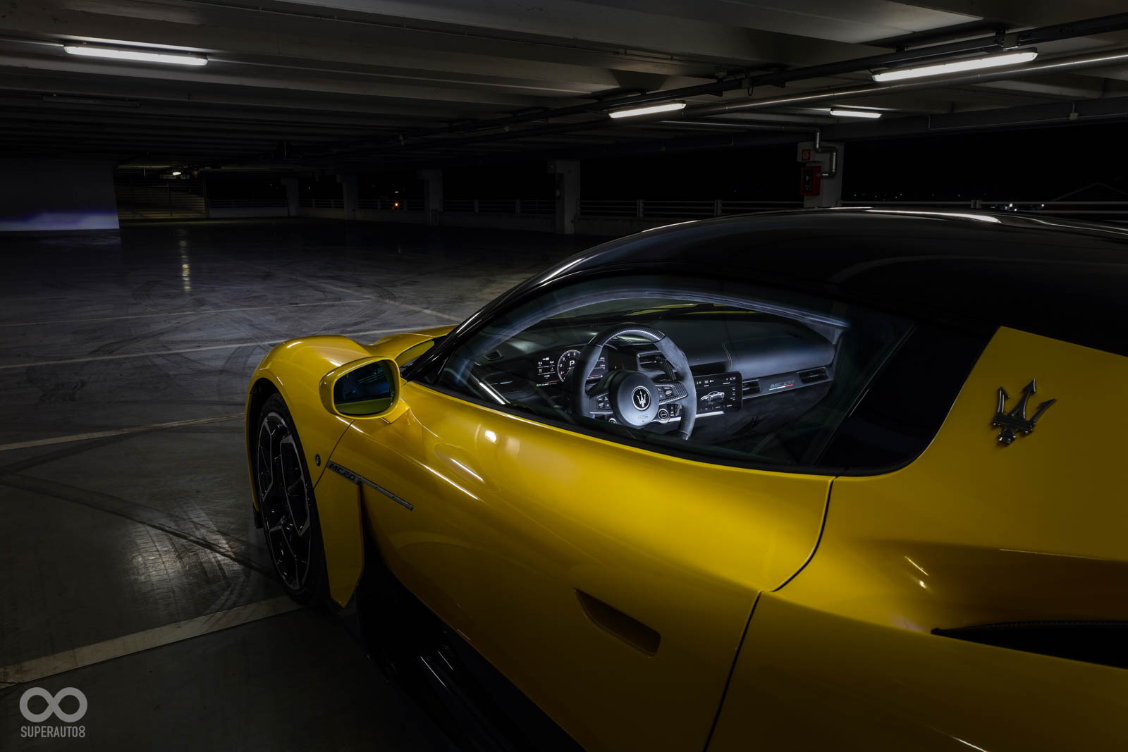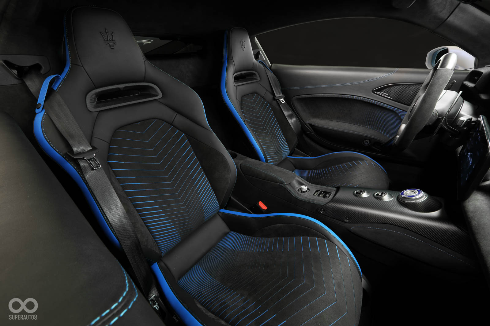 MC20在內裝部分採用極具戰鬥氛圍的駕駛導向設計,由消光碳纖維、黑色麂皮和頂級皮革構築而成:碳纖維三幅式多功能競技方向盤整合引擎點火按鈕及獨立的彈射起步按鈕,並配備Maserati經典的大型固定式換檔撥片;中央鞍座以消光碳纖維包覆,僅呈現駕馭車輛時最需要的重要功能按鈕,其中包含全新設計的駕駛模式旋鈕,讓駕駛人可於「GT」道路模式、「Sport」運動模式、「Corsa」賽道模式 (支援彈射起步)、「Wet」濕滑路面模式、以及「ESC-Off」等多種模式中進行選擇,一坐進車室並能全神貫注於極限操駕之中。