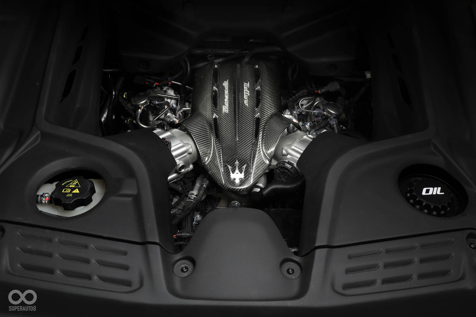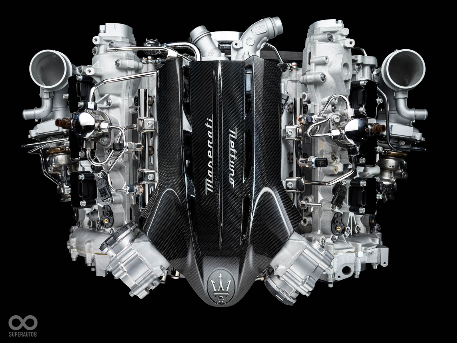 「引擎」決定一輛賽車的能耐;由Maserati Innovation Lab創新實驗室及 Via Delle Nazioni 工作室聯手設計、並由 Viale Ciro Menotti引擎研發中心開發製造的全新MC20動力核心「Nettuno海王星」:搭載源自F1賽車的頂尖技術,採用3.0L V6雙渦輪引擎採90度夾角設計及乾式油底殼;並將雙火星塞系統結合預燃燒室 (Pre-Chamber),搭配供油壓力高達350bar的雙點火系統 (Twin Injection System),達到紊流噴射點火效應Turbulent Jet Ignition(TJI),可於7500rpm爆發630CV最大馬力、3000-5500rpm持續輸出730Nm峰值扭力,每公升超過200hp的輸出功率可謂同級之最,達成2.9秒0-100km/h加速、0-200km/h僅需8.8秒,極速超過325km/h的性能表現。