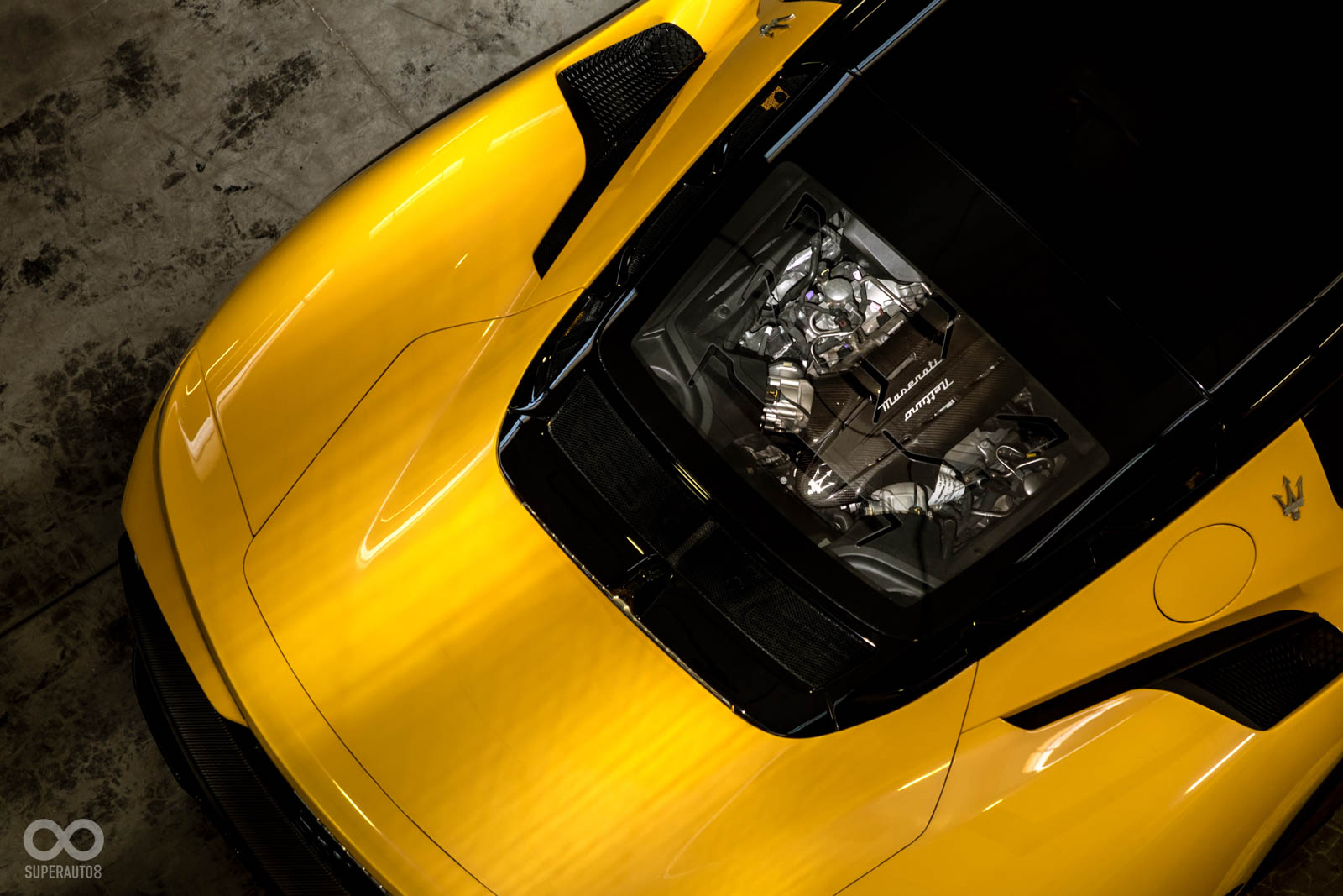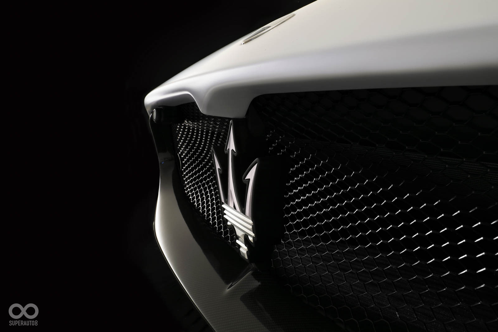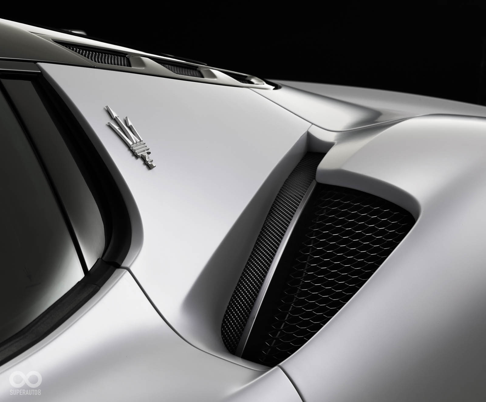 位於全新引擎之上,由特殊材質打造的後擋風罩散熱孔以現代主義的方式詮釋三叉戟廠徽,全新開發的輪圈樣式、車前照明的輔助燈組,皆以呼應三叉戟的輪廓構成;而令人驚豔的蝶翼式側掀車門在設計考量上不僅只是為了美觀,更考慮到進出車室的便利性,彰顯Maserati細膩的設計筆觸。