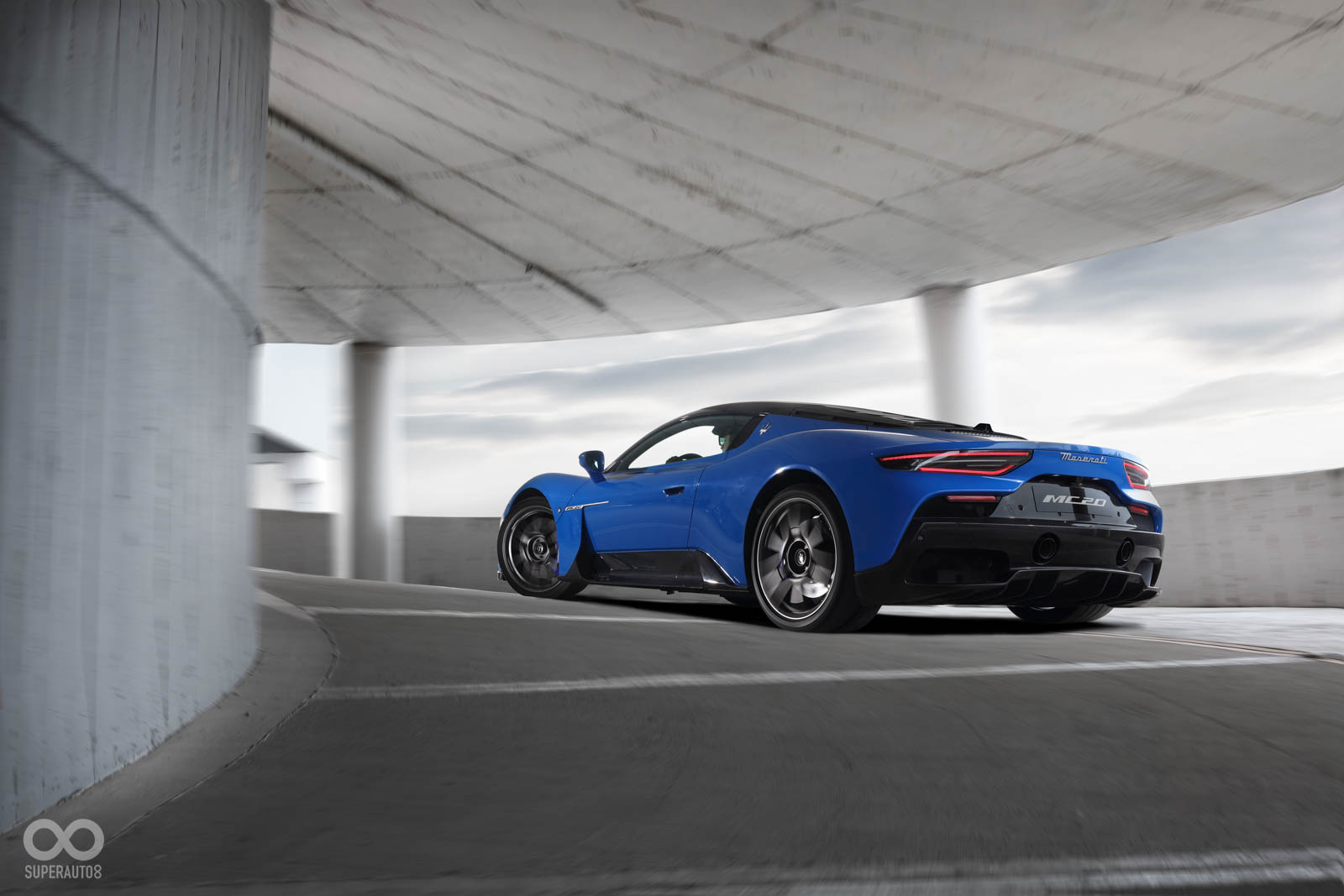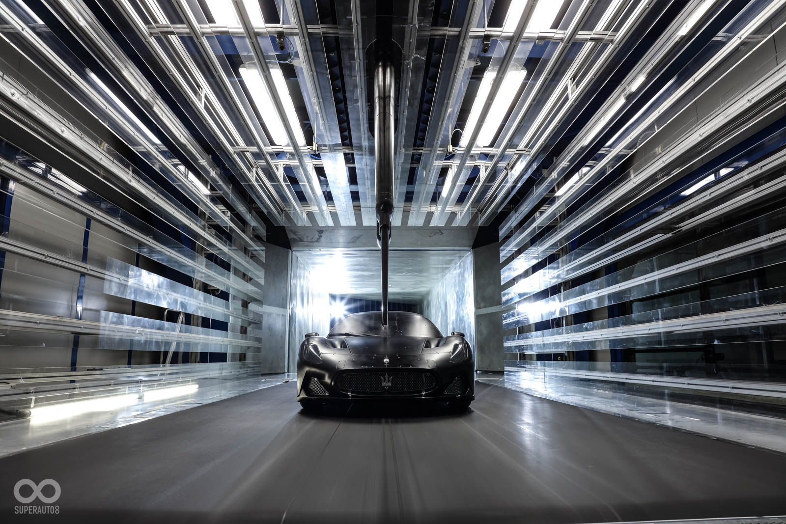 MC20近乎完美的造型設計,絲毫不引響身為超跑的賽道實力;歷經超過2000小時的風洞測試,以及1000次以上的CFD流體力學模擬,在完全沒有任何活動式空力套件或大型尾翼的前提下,便擁有低於0.38Cd的風阻係數;更藉由將空氣導入車底,利用地面效應產生強大下壓力,進一步穩定MC20的動態表現。