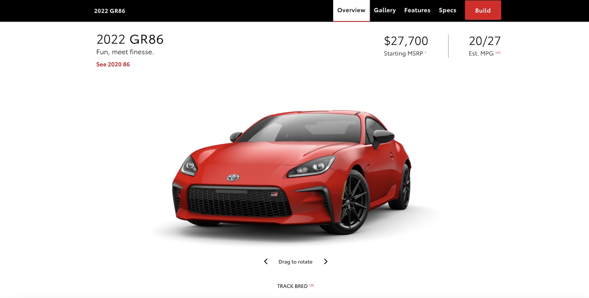 全新一代的86帶來很大變化,除了用上更大的2.4升引擎之外,原廠賦予他一個全新車名GR 86。這輛車最初的車名為86,在北美稱為Scion FR-S,歐洲則為GT86,在其餘市場也稱為FT-86。來到第二代與Gazoo Racing部門緊密結合,車名則被冠名為GR 86,跟自家GR Super和GR Yaris相同作法。