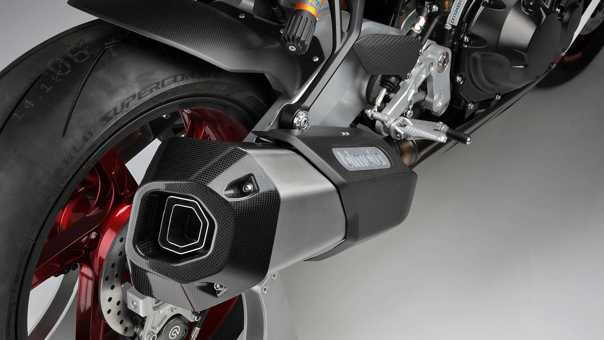 規格配備上,BIMOTA KB4也延續浮誇的義式風格,懸吊使用Öhlins 43mm NIX30倒立式前叉,搭配TTX36後單槍避震器的組合;煞車則採用Brembo Stylema卡鉗,搭配前320MM雙碟、後220MM單碟;車輛的乾重為187公斤,車輛座高為810MM。