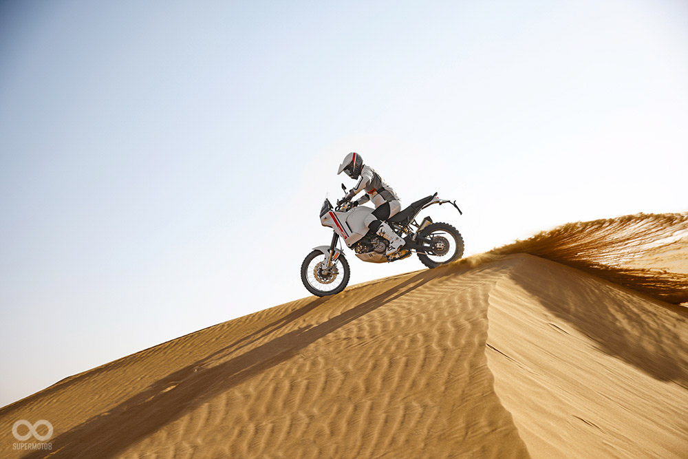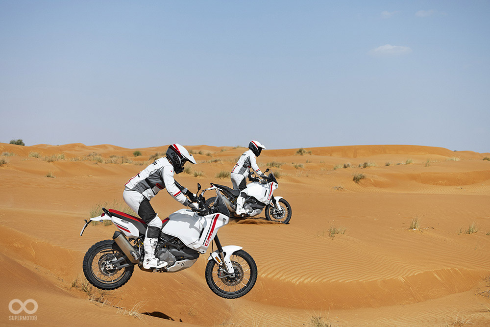科技與電控首先可以發現DUCATI DesertX配有一個類似拉力賽車的直立式5吋TFT儀表,比起自家的Multistrada更有越野硬派風格,電控方面除了常見的運動、旅遊、城市、雨天四種模式外,DesertX額外加入「Enduro Riding Mode」、「Rally Riding Mode」,前者會降低引擎動力、保有適度TCS介入,主要針對輕度越野或新手使用,後者則提供強大動力與減少電控介入,釋放所有的DesertX性能。