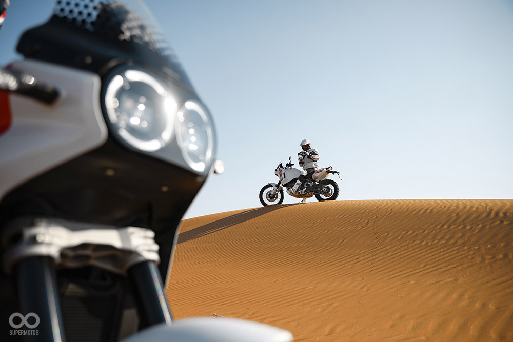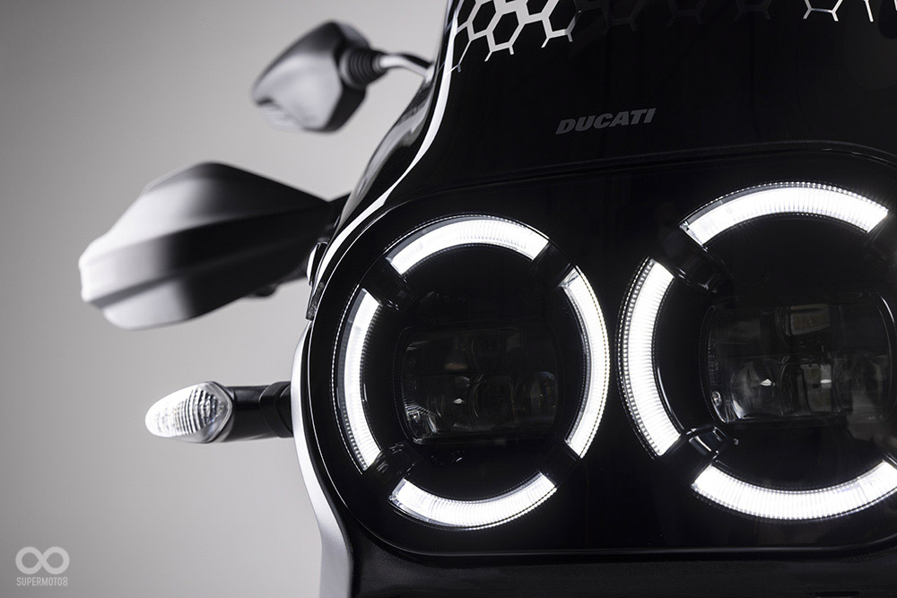 如果你長期關注DUCATI消息,應該會知道DUCATI DesertX是在2019年米蘭車展上,官方就展示過的概念多功能車,簡約的外型設計加上沙漠中拍攝的宣傳照,說這是火星電影或星際大戰中出現的未來車也不奇怪,車頭使用雙圓燈加上雙LED光圈日行燈設計,上頭還有ADV車款常見的短風鏡點綴。