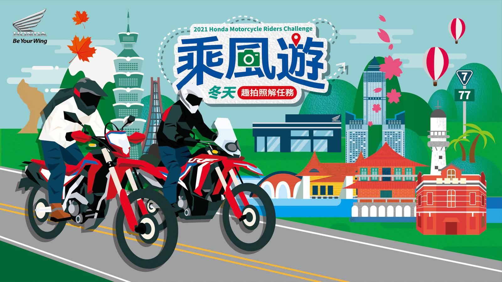 為了持續實現「Be Your Wing」的品牌精神,讓更多Honda車主體驗騎乘二輪的美好,自2021/08/02起,Honda Taiwan舉辦「Honda Motorcycle Riders Challenge乘風遊」 車主專屬活動,將透過官方網站公告,並有兩季度活動,夏季:2021/08/02-2021/11/20、冬季:2022/1/08-2022/03/10,車主將能夠在平日騎行中前往Honda Motorcycle Riders Challenge乘風遊活動中所規範之景點並留下照片,僅需符合各項的遊戲規範便能獲得專屬獎項與季、年度禮品抽獎資格,令車主在平日的騎行體驗更充滿不同樂趣。