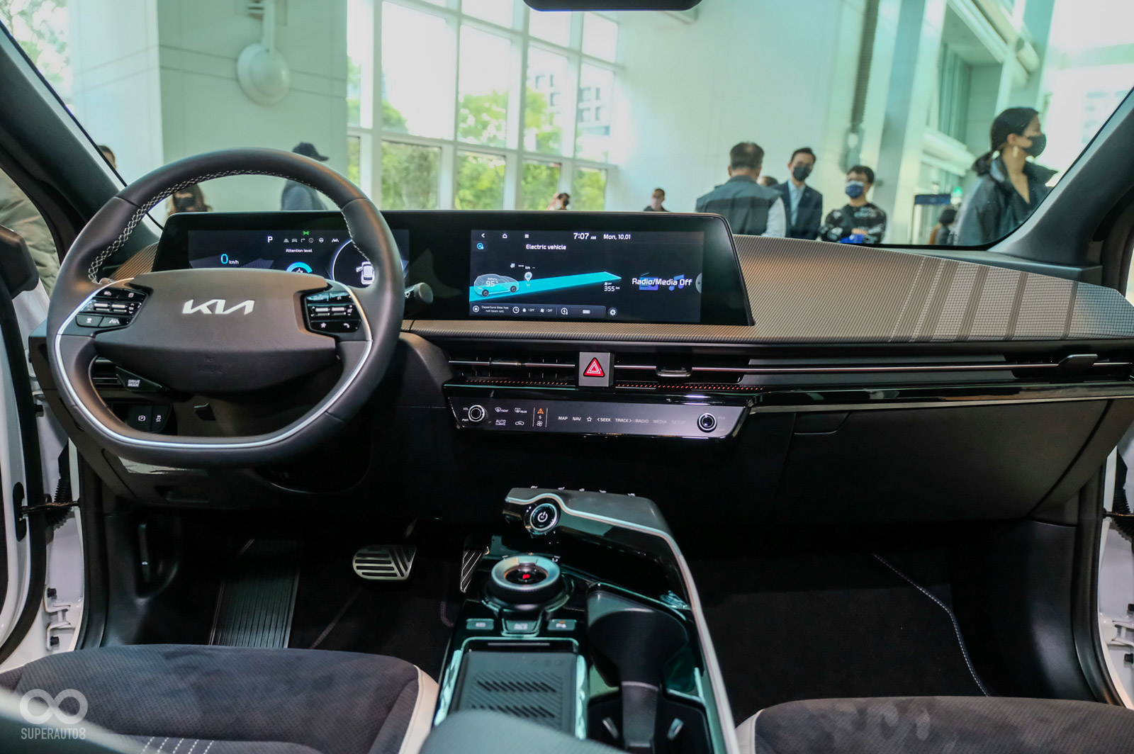 內裝風格看起來也相當奢華,曲面的雙12.3寸螢幕看起來高級感十足,內裝氣氛燈、中控面板佈局看起來也是瞄準頂級車款設定,不論外觀內裝都令人格外期待EV6正式上市。