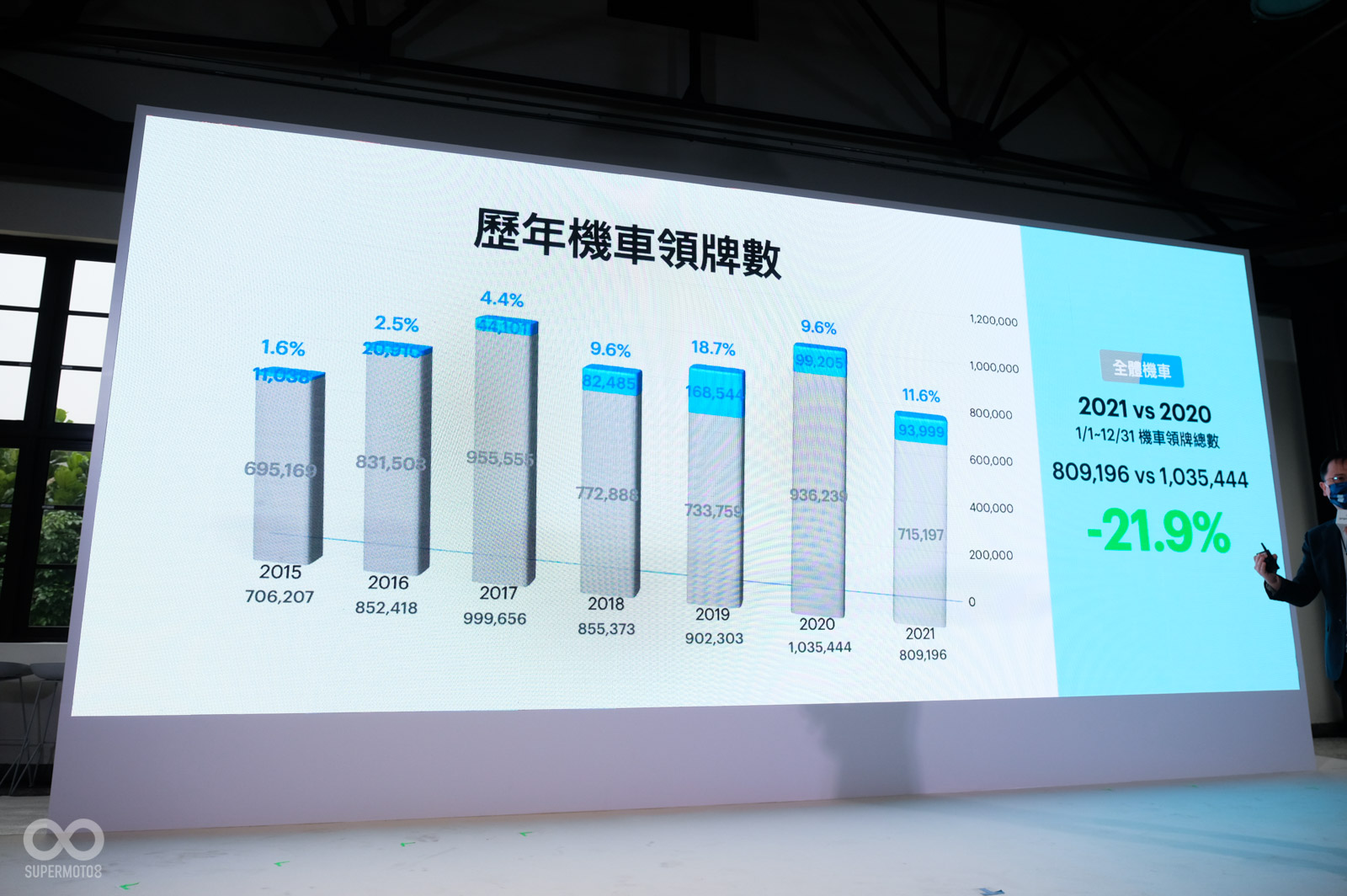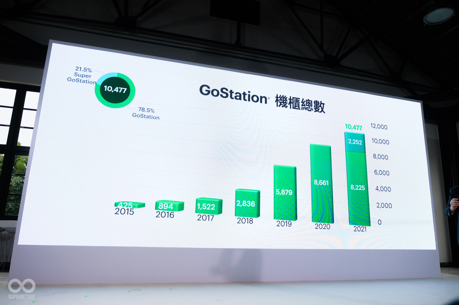 展望2022年,Gogoro也在今天活動表示年底前電池交換站數量將會超車全台加油站數量、持續佈建Super Go Station、偏鄉電池交換站。