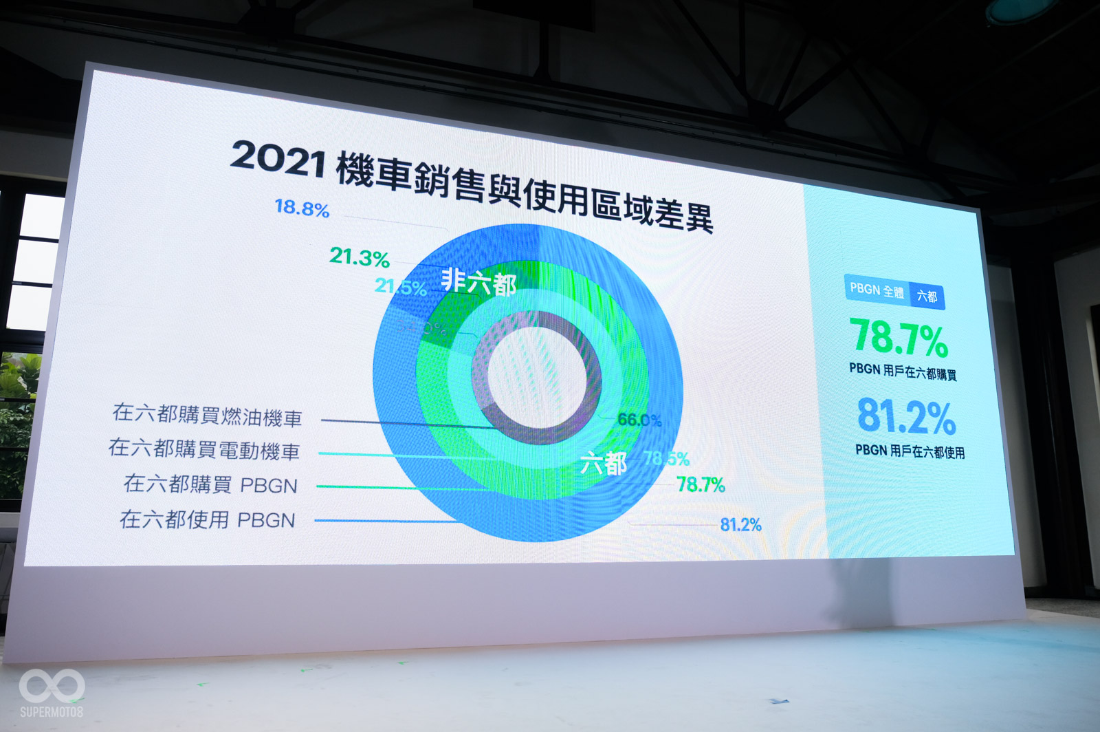 累積到目前為止,PBGN車口數已經累積45.3萬台,隨著越來越多用戶加入PBGN,Go Station也從2015-2017年的增加觸及(廣設站)改變為2017-2021年的提高供給(提高電池數量),其中一大功臣就是Super Go Station大量鋪設已經佔有21.5%,平均每一站就有42.2個電池槽,建設是集中在六都滿足消費者需求,因為有近8成購買電動車民眾,都集中在6都。