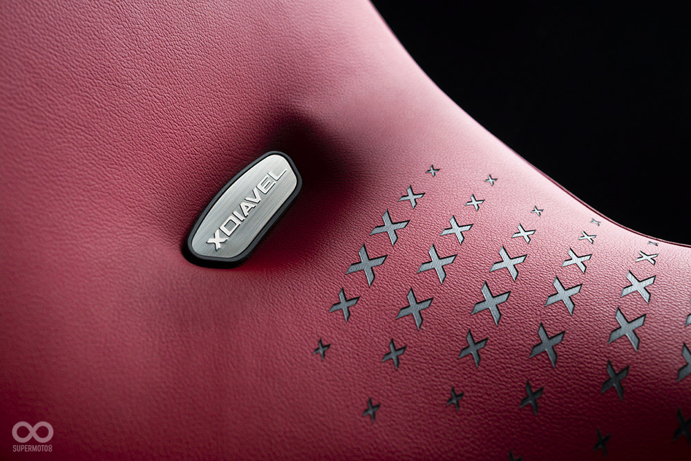 Ducati XDiavel Nera原廠設定限量500台發售,除了上述提到的全黑外觀外,最大亮點就是全車座墊都換上Poltrona Frau的真皮皮革並結合XDiavel的X字樣點綴,不同於我們既定印象中“買車選顏色”的公式,在Ducati XDiavel Nera上頭你要做的事情則是“買車選椅墊顏色”,Poltrona Frau特別準備:紅、藍、灰、綠、咖啡五種顏色。