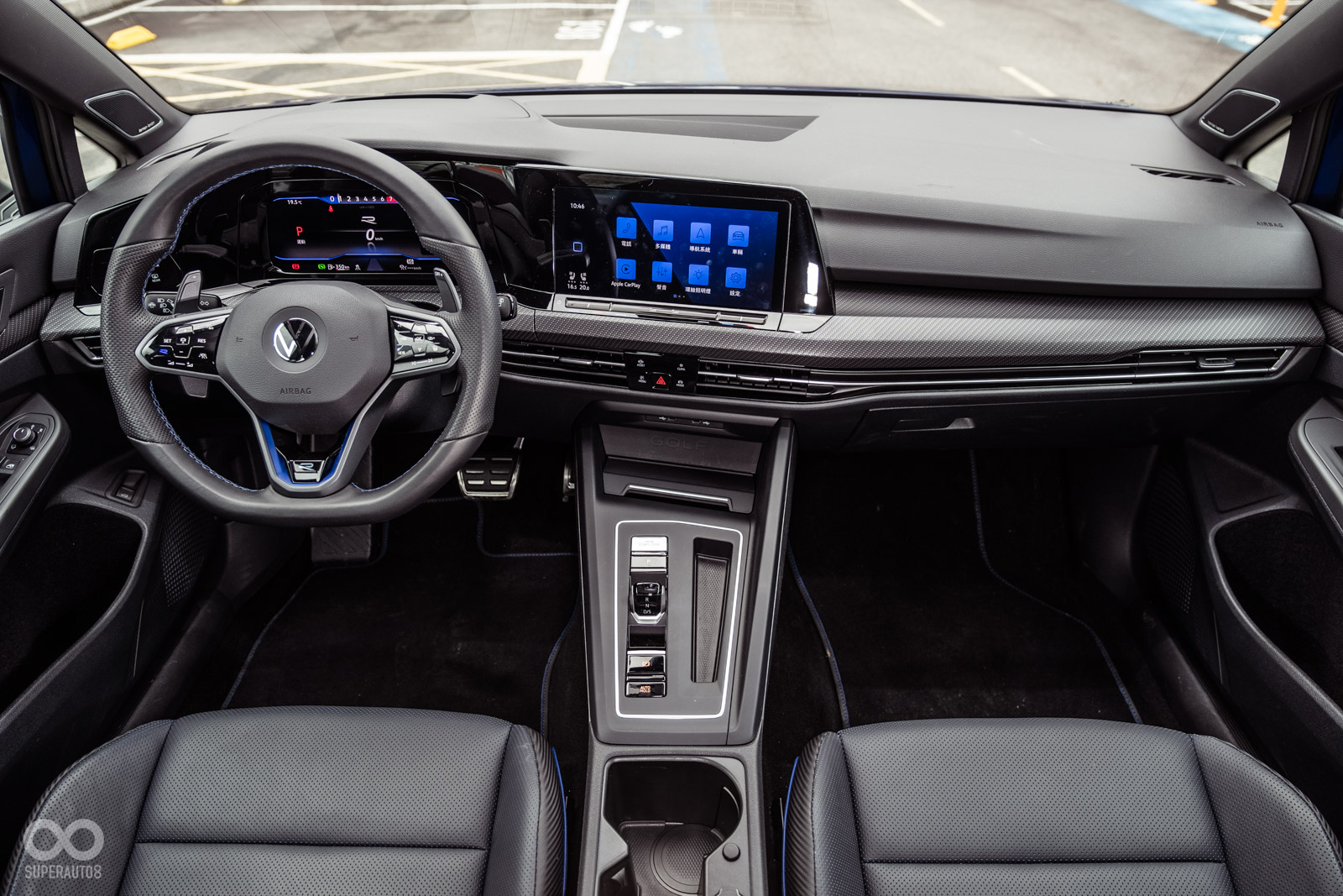 坐進車內還是難免讓人有些失望,在擁有320匹動力與滿滿熱血配備加持下雖然抓準性能迷目光,第一眼認為內裝風格依舊維持百萬左右Golf鋪陳設計,不過仔細品味後會發現座椅換上Nappa Carbon真皮跑車座椅附駕駛座電動調整、R版專屬方向盤除了多一個Logo外,額外增加的「R」鈕也可以快速切換駕駛模式,搭配兩旁超大的換檔撥片看起來殺氣十足。