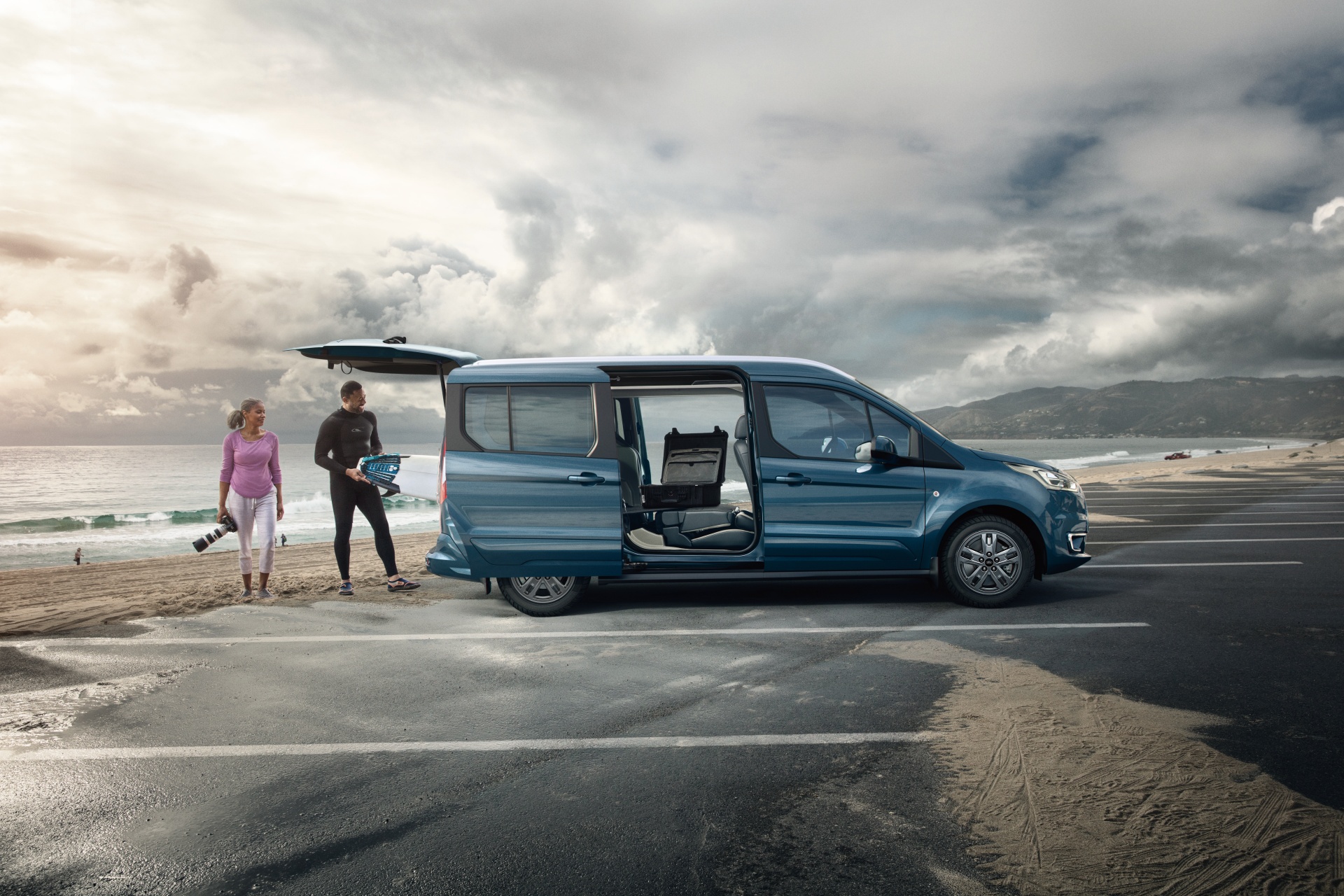 New Ford Tourneo Connect旅玩家擁有Easy Open雙側滑門配置,相較於傳統車門外開設計,採用Easy Open雙側滑門不僅具備實用性和出入便利性,同時可避免後座乘客開門時未注意後方來車,導致意外車禍事故發生;而符合人體工學的離地高度,讓家中雙親或抱著嬰幼童的父母上下車時加倍輕鬆。