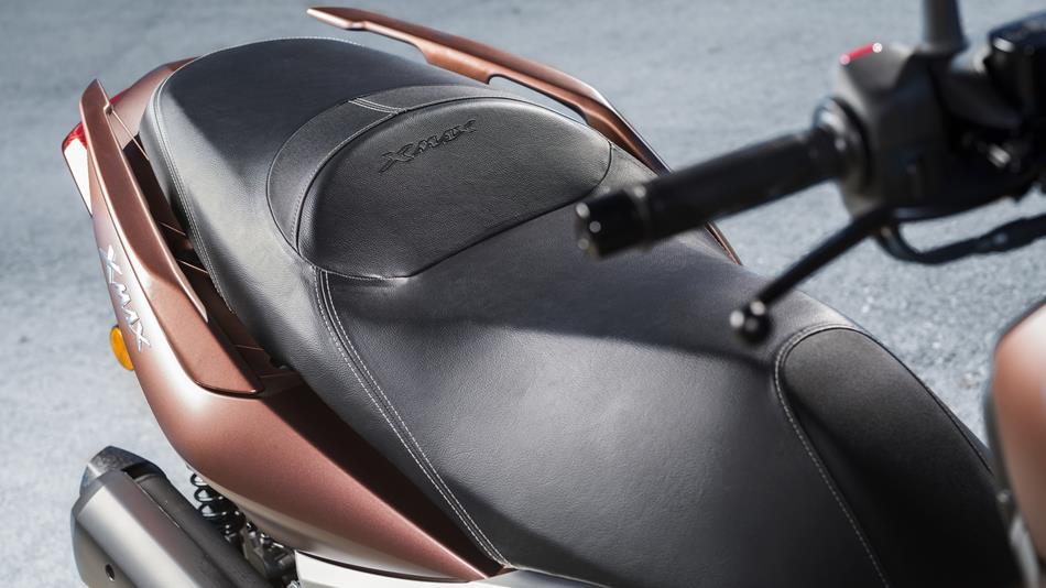 車架底盤也經過全新設計,車身尺碼微調,全車長縮短了35mm,軸距也小幅縮短了5mm,讓新款的X-MAX穿梭於市區中更為靈活,停找車位也容易些,做高維持以往的親切,795mm的高度讓騎士們能輕易的駕馭,油箱容量獲得小幅度提升,由原本的11.8L成長到13L,搭配上省油的引擎,能擁有更長的巡航距離,雖然YAMAHA在X-MAX300上加了一大堆的配備,油箱變得更大,車重卻硬是比前代還輕了1kg,仍維持在180kg以內,不難看出原廠在輕量方面下的苦心,而這樣輕巧的車重也讓X-MAX成為一台老少皆宜的優質速克達。