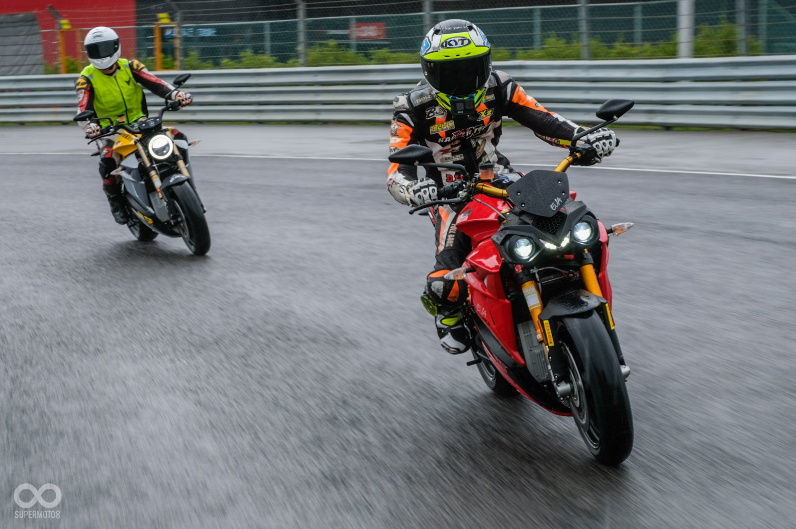 實際下場騎乘前,對於ENERGICA三車的雨天試乘確實讓人有些心驚膽顫,畢竟電動車狂暴的扭力配上接近300公斤的車重,不得不讓人慎重看待。