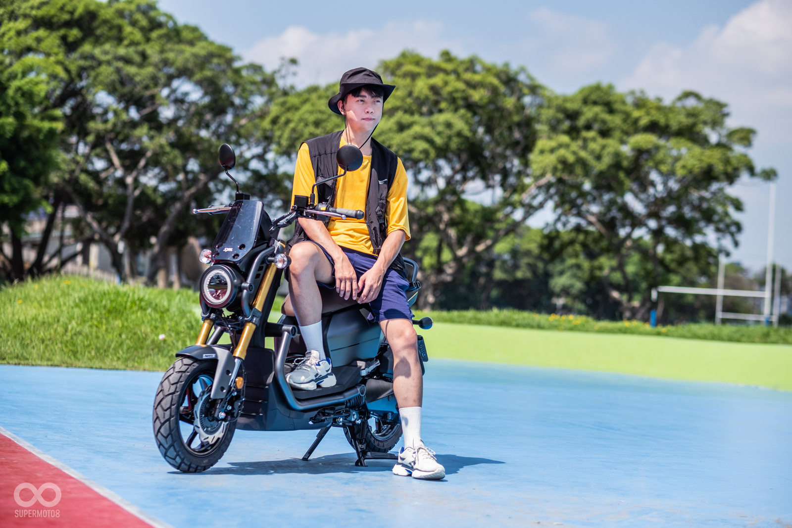 跨上KRNBT,首先就能感受到SYM為了玩樂性將握把設計得比較寬,即便是身高較高的騎士也不會覺得KRNBT乘坐起來過於侷促,手肘和膝蓋間的空間相當寬敞,瘦窄的車頭也給予不錯的視野,頗有騎乘越野車的既視感。