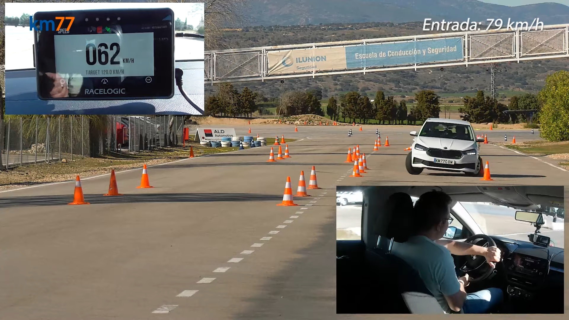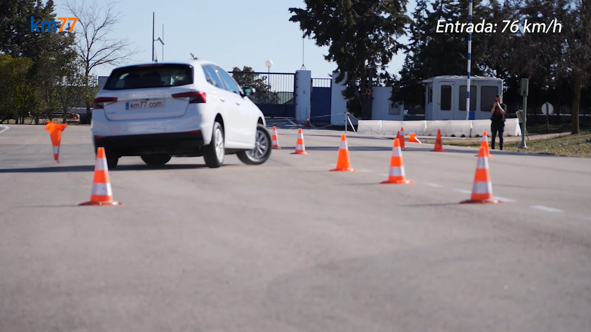 一開始km77的試車手以時速79km/h的速度進入陣仗當中,在首次進入開陣仗掃倒了兩個錐桶,不過整輛車的動態反應被駕駛認為相當不錯,而在第二次的測試以75km/h的速度進行,雖然有點稍微的轉向過度讓車輛看起來不太穩定,但這次沒有擊倒任何錐桶,不過當時速提升到76km/h的時候,Fabia並不能順利通過陣仗,因此這輛車的成績就是75km/h作收,不過駕駛有注意到車輛在75km/h進入測試時,ESC以一種微妙又有效的方式在發揮作用,幾乎不會讓駕駛察覺,但是可以讓車身更穩定,因此對於這次Fabia的ESC讚譽有加。