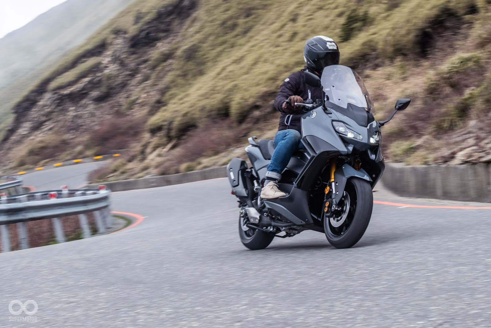 面對彎多路窄的台14甲線,TMAX560依舊維持20幾年來的優異基因,只要眼前出現彎道,TMAX就可以輕鬆地切進彎角,敏捷反應有如超強的足球員在場上繞過一位又一位對手防守,輕鬆繞過每一個彎角,並且從傾倒到出彎拉正車身的那一刻,不會有多餘的晃動讓你感到不安。