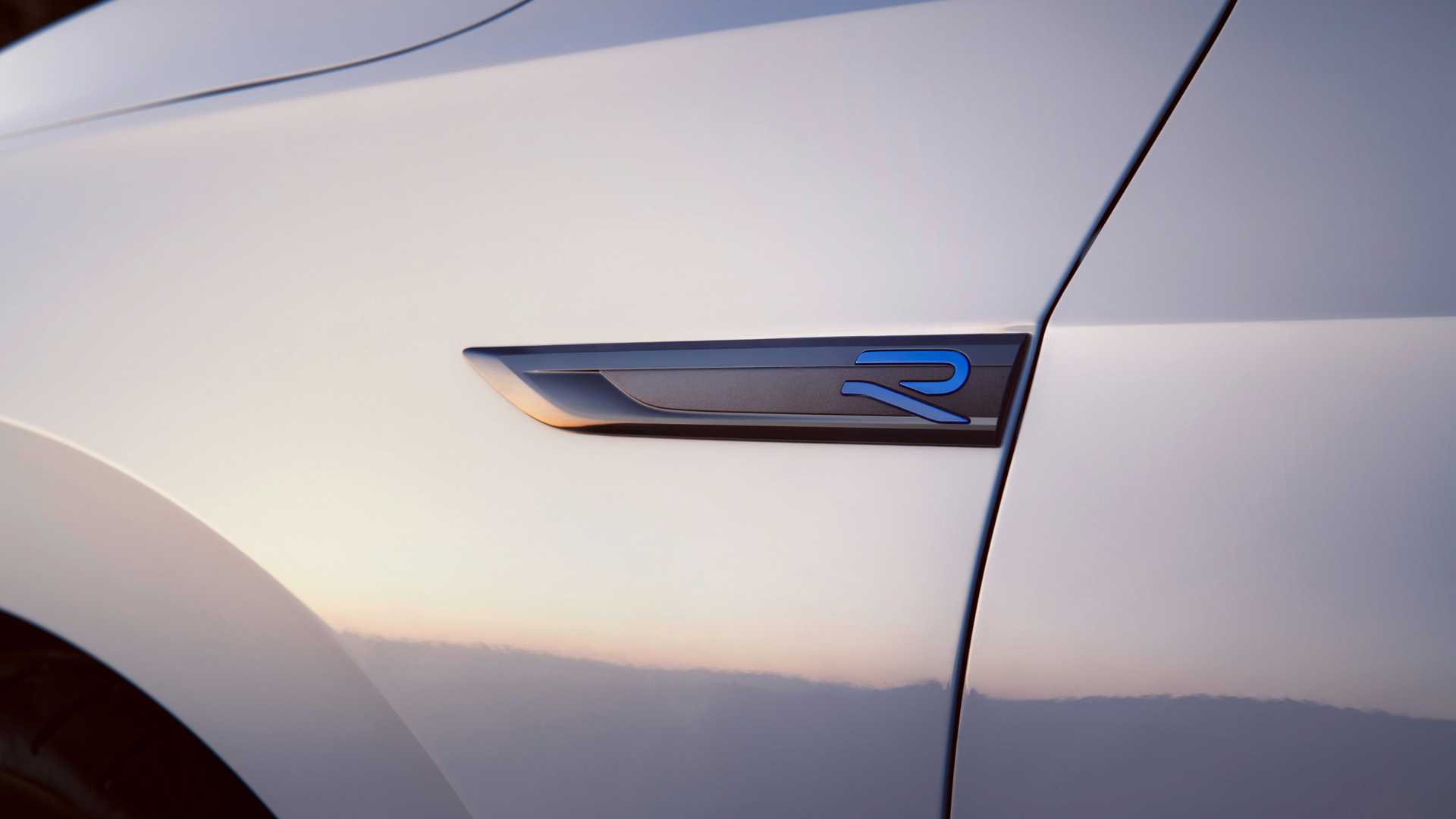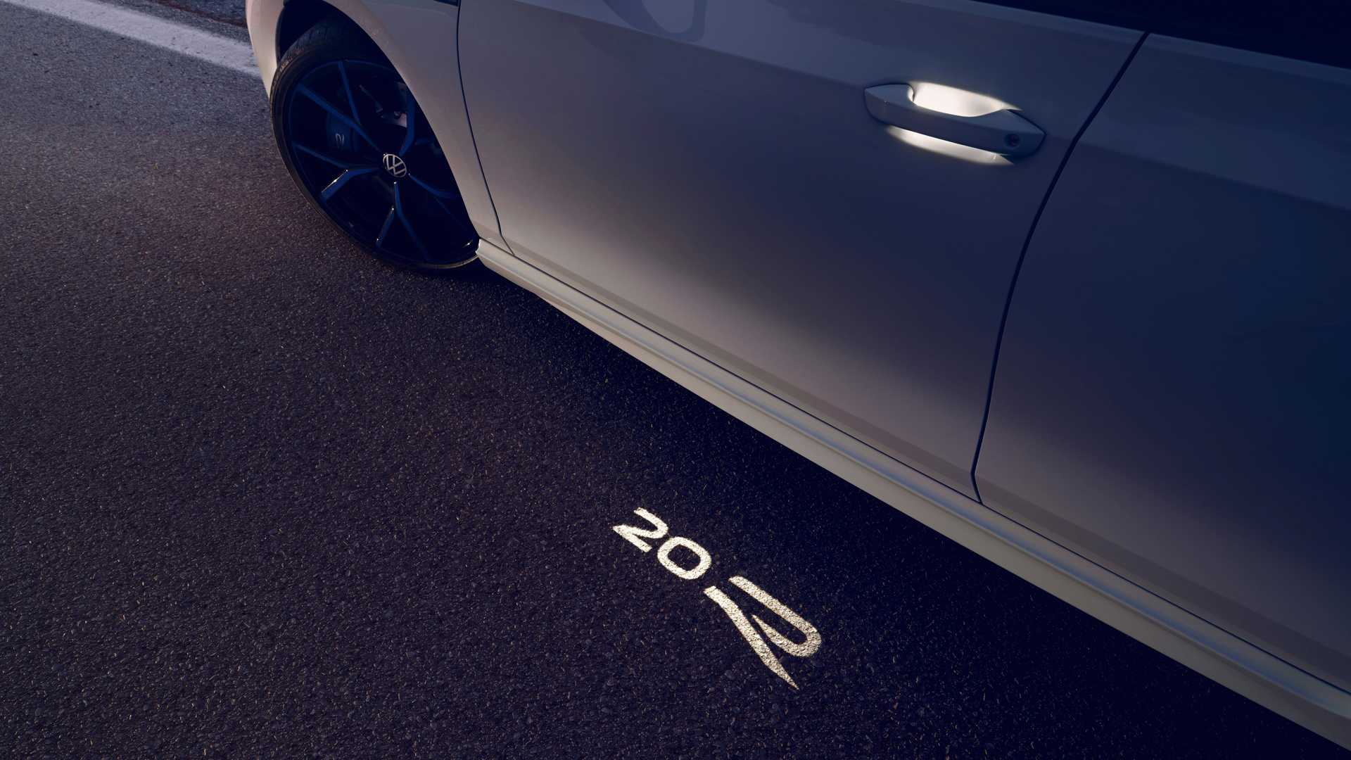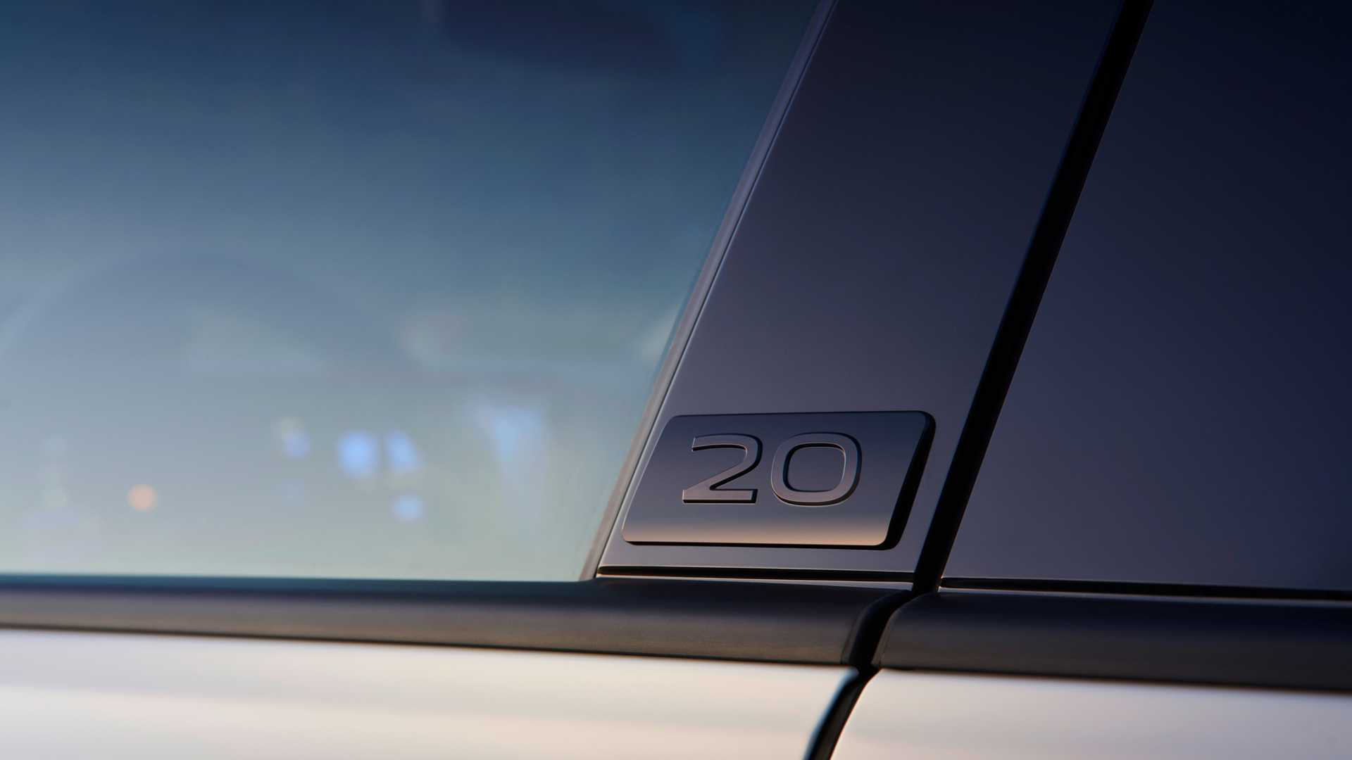 在外觀上可以看到水箱護罩、兩側的葉子板以及尾門上有著「R」徽飾,此外在後視鏡蓋以及標配的19吋輪圈配色上,皆有藍色以及黑色兩種不同的選擇,特別的是在B柱上還有一個「20」的紀念銘牌,也是這輛Golf R 20週年特仕版的專屬象徵,此外就連迎賓燈的設計也都有「20 R」字樣,展現這輛車與一般Golf R截然不同。