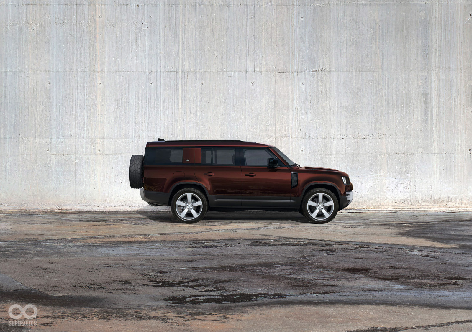 Land Rover Defender 130 專屬的全新聖多納紅選配車色彰顯優雅的車身輪廓,並為設計增加了更多的奧妙之處, Land Rover Defender 130 車型在第二排及第三排均標配全景天窗。