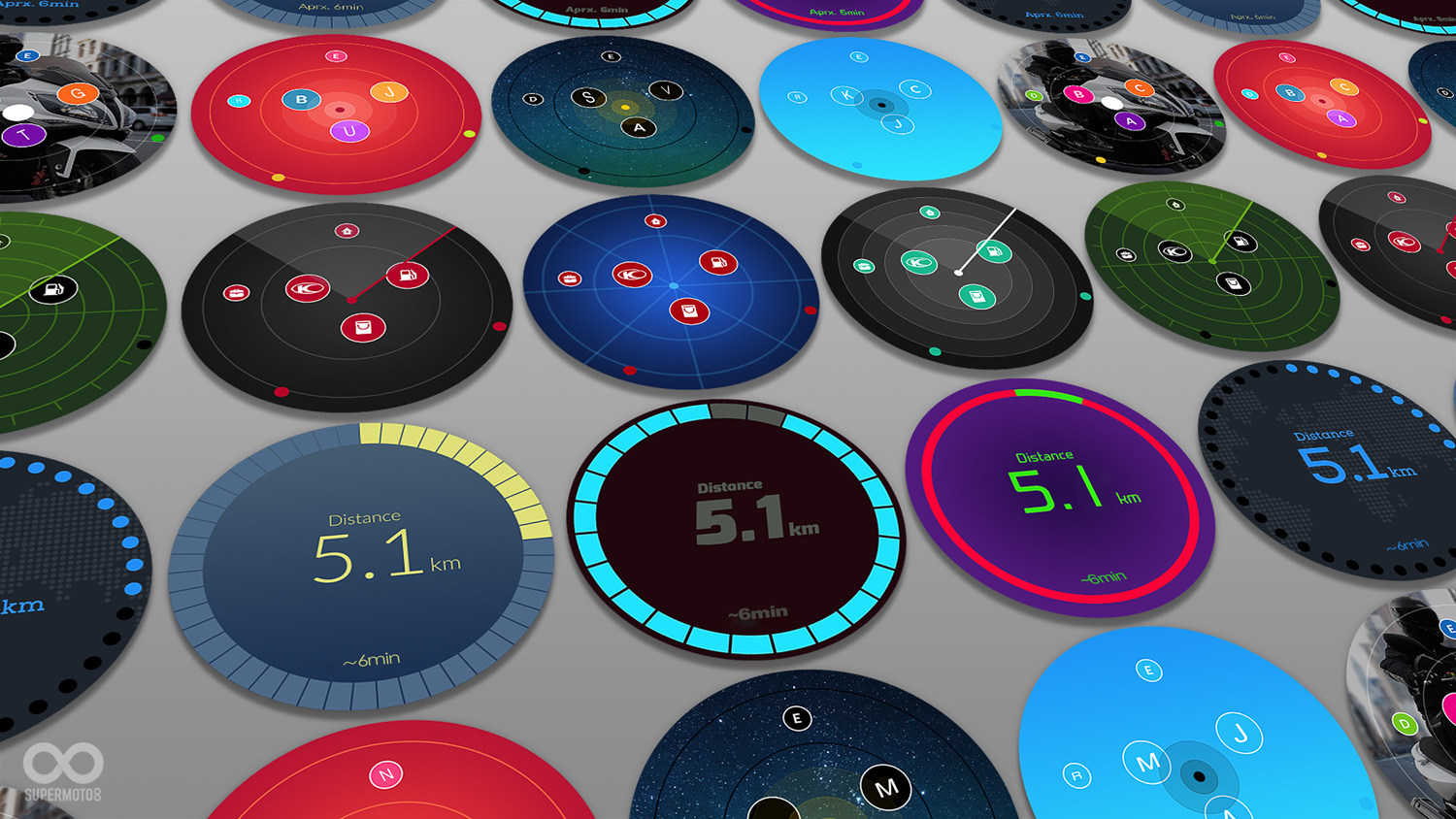 時間 使用者可以選擇不同的時鐘錶面設計,也可以自行創作錶面。甚至透過app上傳與其他騎士互動,同時也可下載使用其他騎士所設計的錶面。