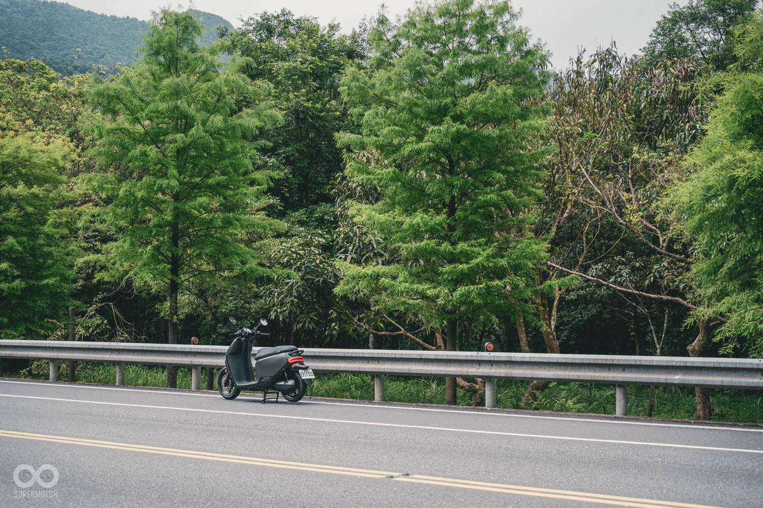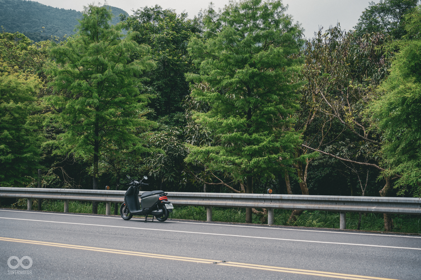 這次我們一面工作,一面出去玩!我們特別選擇北台灣美拍山路,帶著這台新上市的GOGORO SUPERSPORT來場公路美拍,首先我們來到坪林的106乙縣道,這條橫跨坪林-石碇的山路除了尚未被區間測速毒害這一大優勢外,坪林端上山後更有綠意滿滿的茶園依山而建,悠閒的氣氛相當適合放慢腳步,享受騎車旅遊的樂趣。