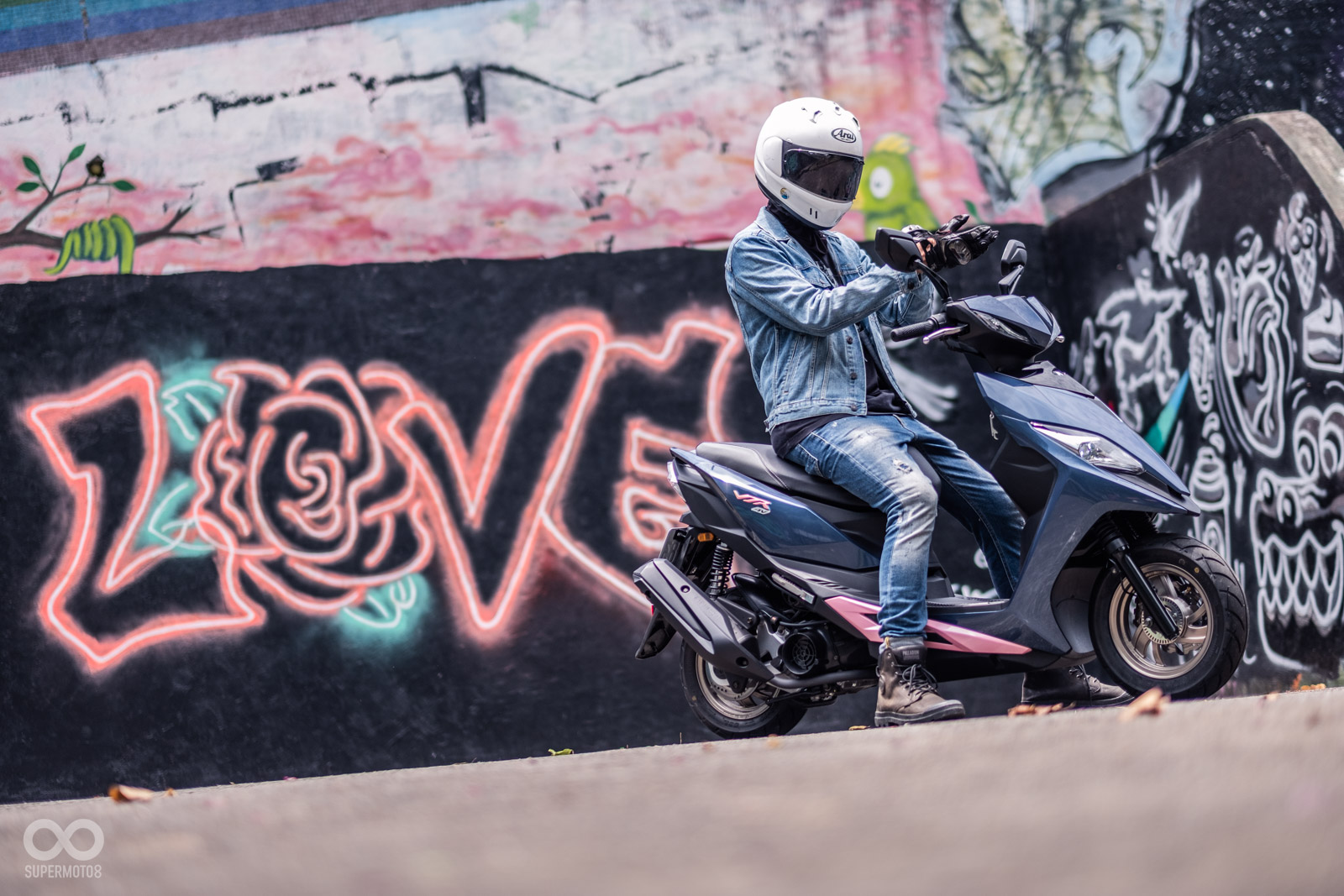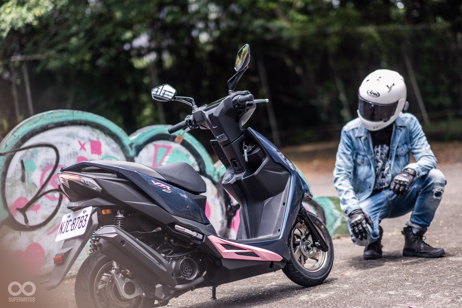 此外,KYMCO NEW VJR 125 TCS這次也為了吸引更多年輕騎士,在中段車身的底部加上更多個性化的點綴,特別是本次拍攝的魅影藍車色上,底部更以搶眼的粉紅跳色點綴,藍色與淺粉的明暗對比,讓NEW VJR 125 TCS變得個性許多。