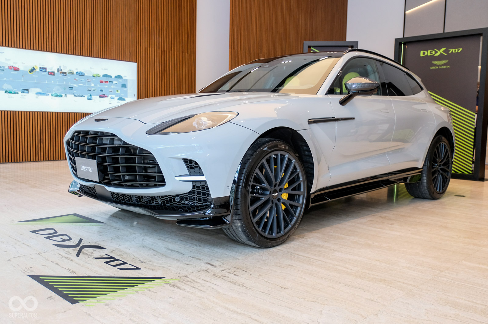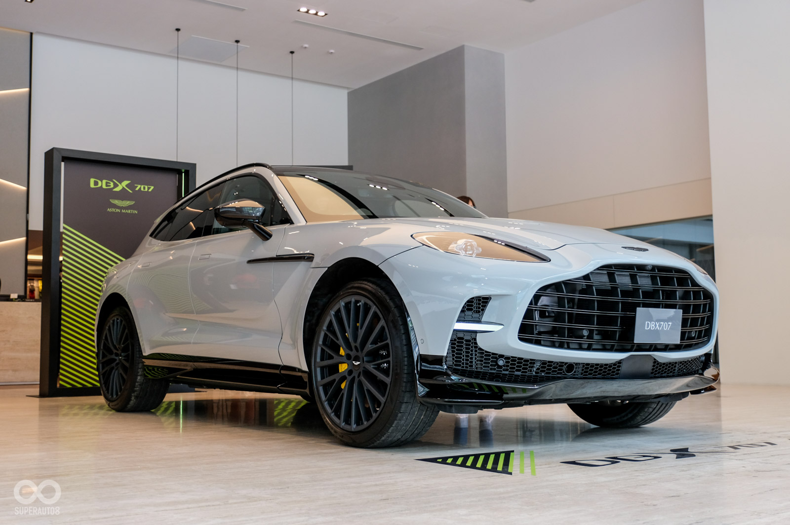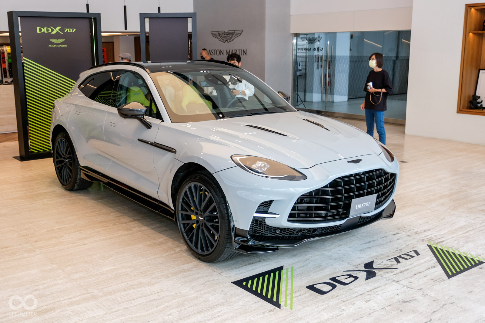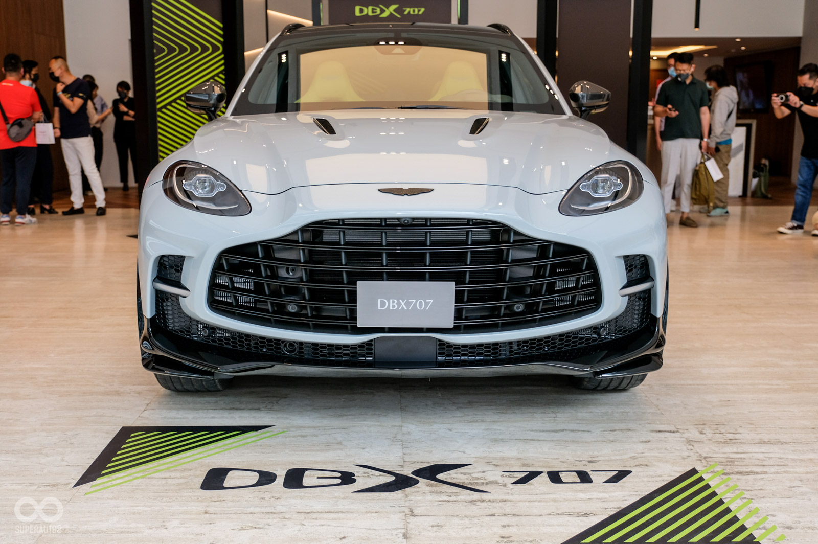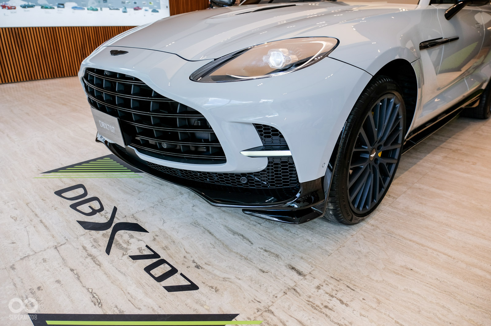 外觀最明顯的改變,在於DBX707換上更大的前格柵與新款日行燈的全新車頭設計,進氣口、煞車冷卻通道以及前分流器造型亦與DBX V8相異。車頭設計仍然沿用品牌DB家族車系經典的凸字形水箱護罩,傳承ASTON MARTIN超越百年的純正英倫血脈。