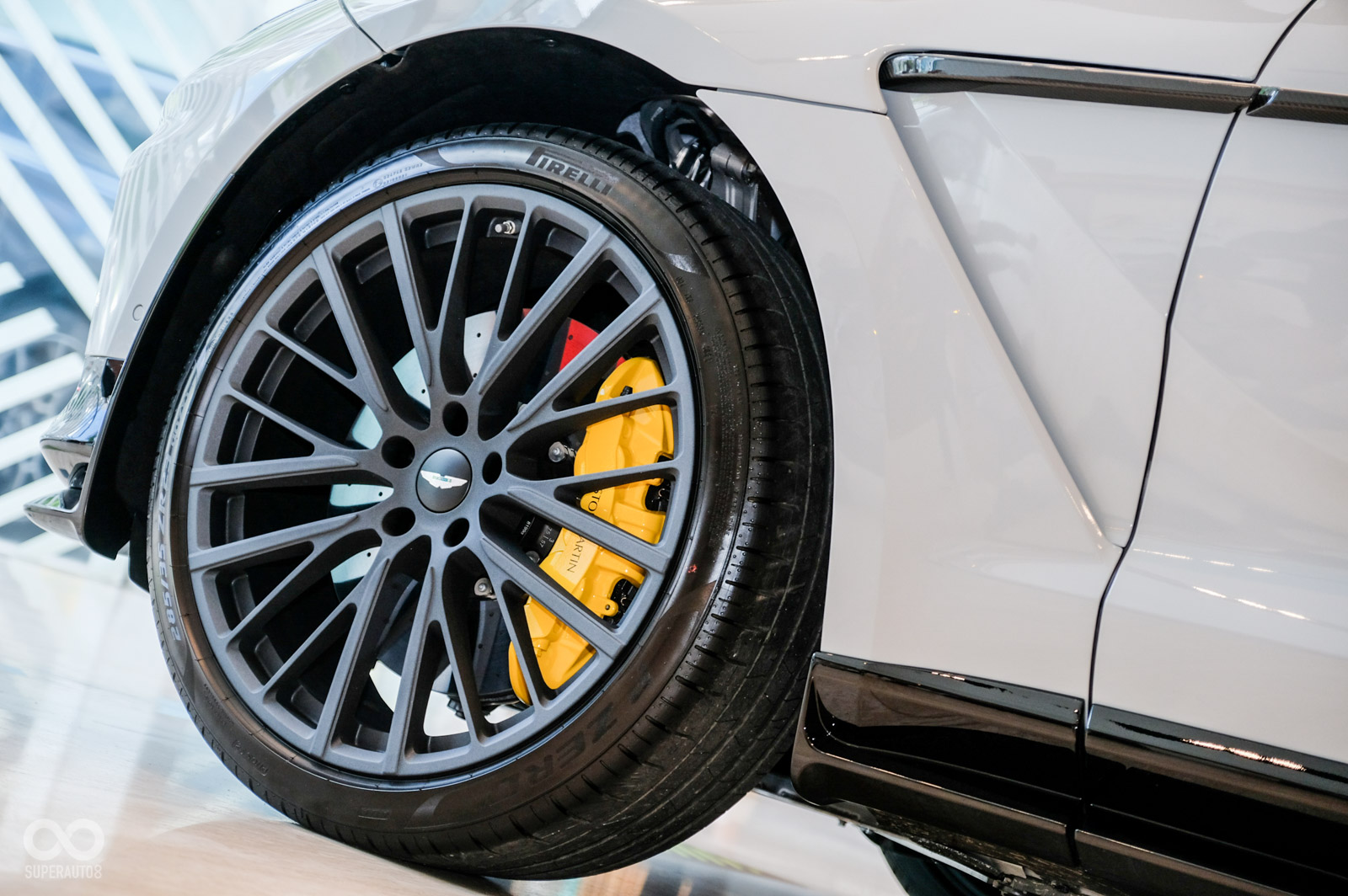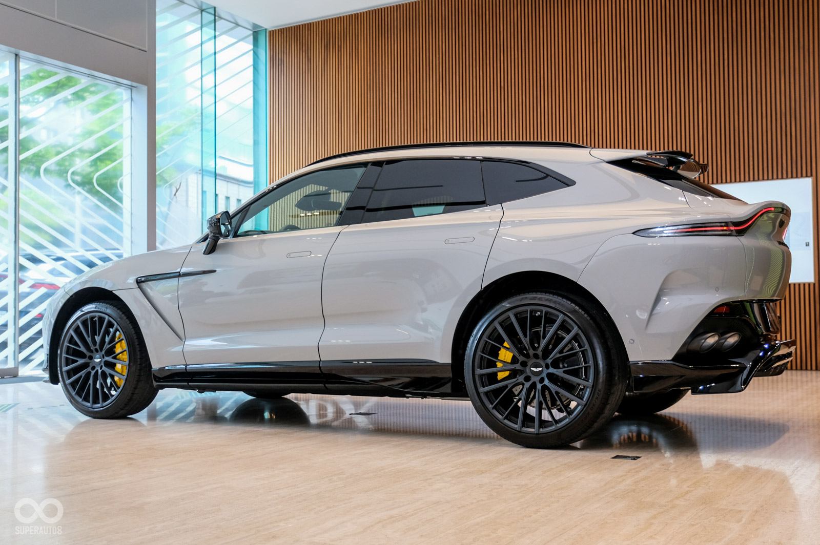 本次拍攝版本還額外選配Apex Grey賽道灰為漆色主調,選用碳纖維上層外觀套件,側進氣飾條、後視鏡蓋與引擎蓋散熱網分流鰭以碳纖維材質呼應DBX707濃厚競速感,搭配23吋黑砂面鍛造輪圈及燻黑色透明尾燈,並以黃色剎車卡鉗為車身視覺焦點,凸顯車輛行駛時的亮眼動態感。