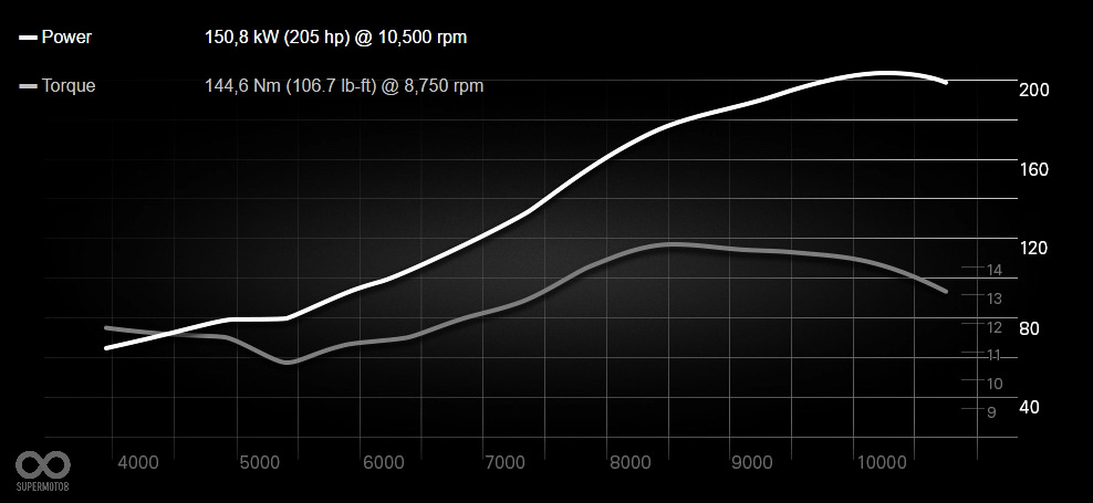 最高馬力 158.1kW (215 hp)/11,000 rpm