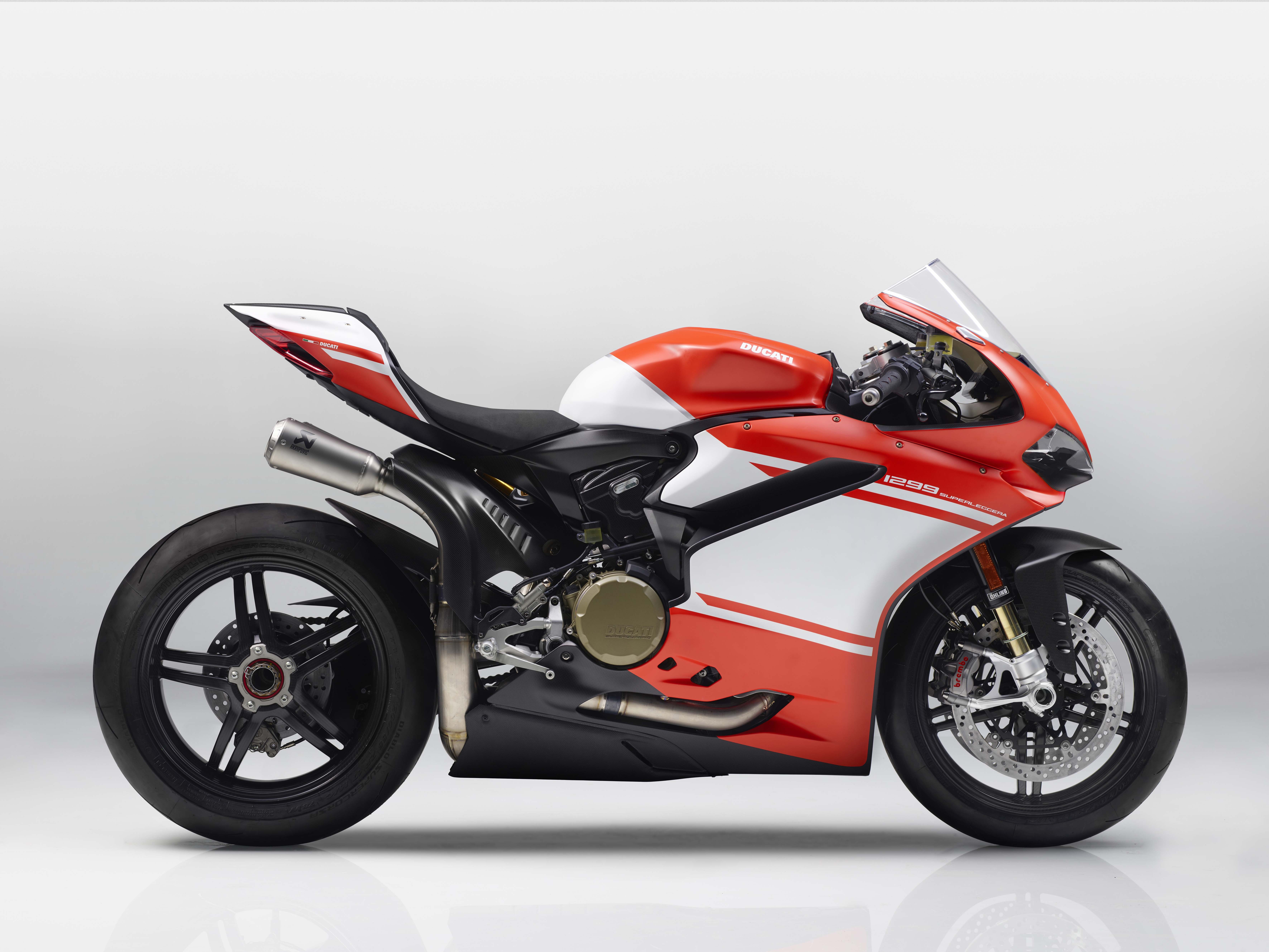 除此之外壓縮比也從標準版的12.6:1提升至13.0:1,使燃燒完全動力提升,結合多項技術創造出DUCATI有史以來最強勁的L-twin引擎,最大馬力高達215hp/11,000rpm,然而這還不是Superleggera的全力,而是為了通過Euro4規範的"封印版",對於動力有所追求想體驗全馬力的車主們DUCATI也準備Track Kit賽道套件,換上由Akrapovič所打造的WSBK競技排氣管,馬力將能上看220hp,而車重則會再減輕4kg,來到161kg名符其實的超級輕(Superleggera)。