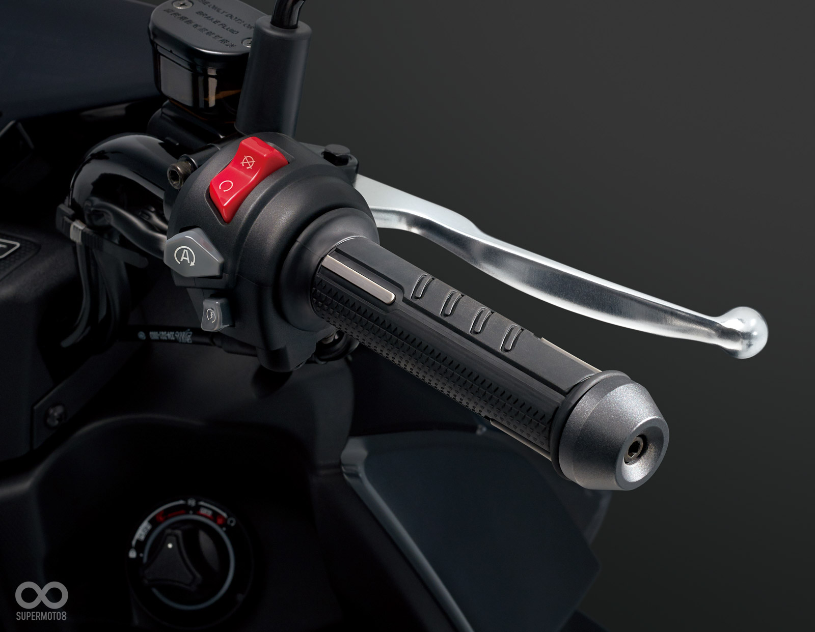 DRGBT KEYLESS Edition不凡升級打造全新高質感內裝樣式,全新晶透剎車總泵設計將極致的造車工藝透徹展現,把手開關以最佳人體工學手法打造,採用3D立體式按鍵開關,讓騎士進行功能操作時手感大幅提升,透過整體內裝樣式優化,堆疊出旗艦性能跑車的獨特魅力。