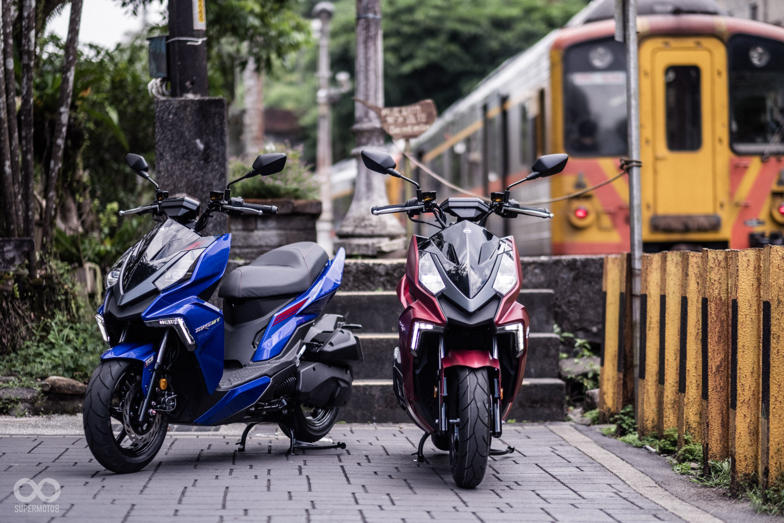 SYM DRGBT keyless 版本本次有四個車色,而本次我們試乘的車色分別為「魔幻紅」、「極炫藍」兩個顏色;首先是魔幻紅,這個以高質感的霧面消光紅打底,整台車在夏日的陽光下看起來相當動感。