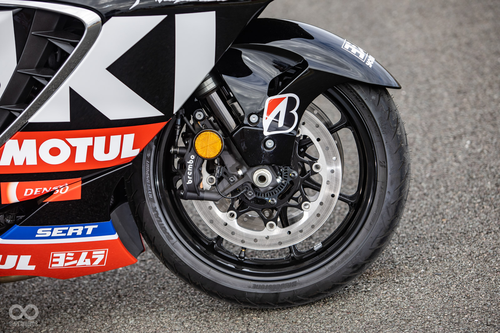 不同於現行HAYABUSA簡潔高雅的塗裝,因應車隊耐久賽車的塗裝風格,可以看到外觀採用黑紅雙色搭配,斗大的SUZUKI字樣則貫穿車身中央,前土除、車尾等細節也可以看到Yoshimura商標默默置於其上。