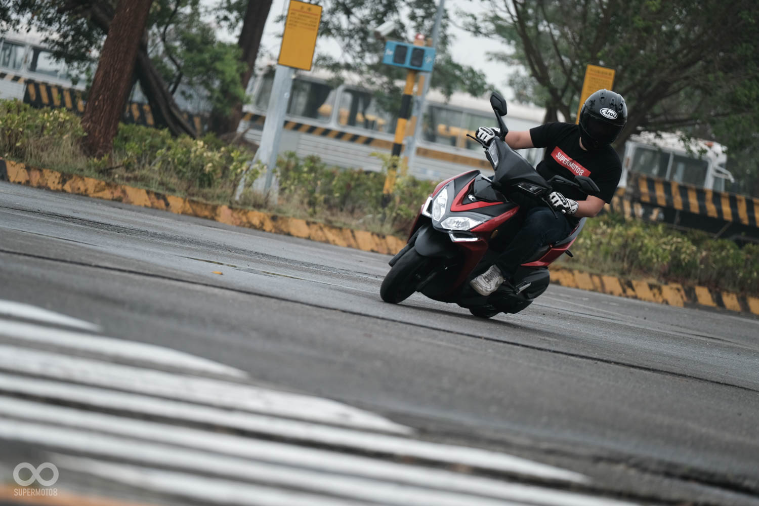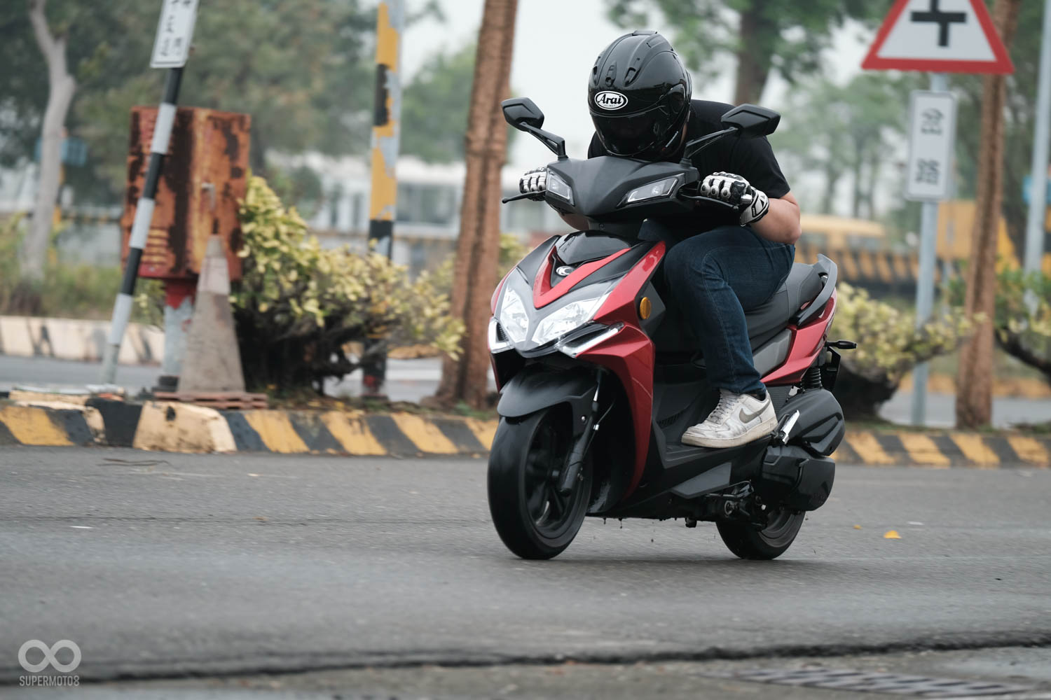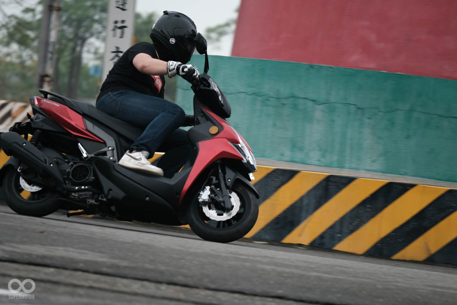 輕帶油門,轉速漸升起步的反應非常輕快,沒有誇張的轉速拉升,動力飽滿卻不毛躁,引擎的細膩度與以往相比有明顯的提升,在封閉的場地裡我不客氣大補油門,胯下的坐騎隨即衝出,這與Racing S憨厚溫和的印象大不相同,加速毫不拖泥帶水,俐落明快的加速感甚至讓我想到系出同門小鋼炮VJR125,但引擎的震動與轉速卻又低上許多。
