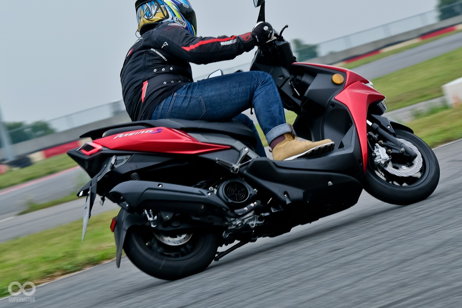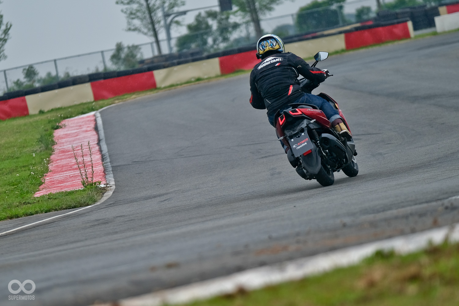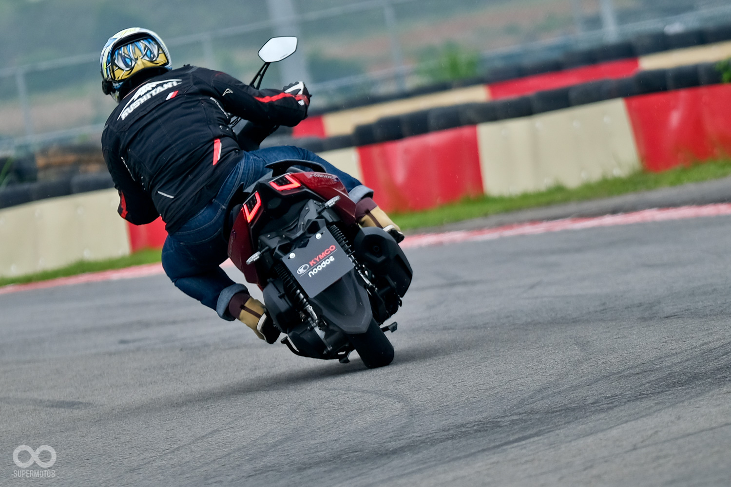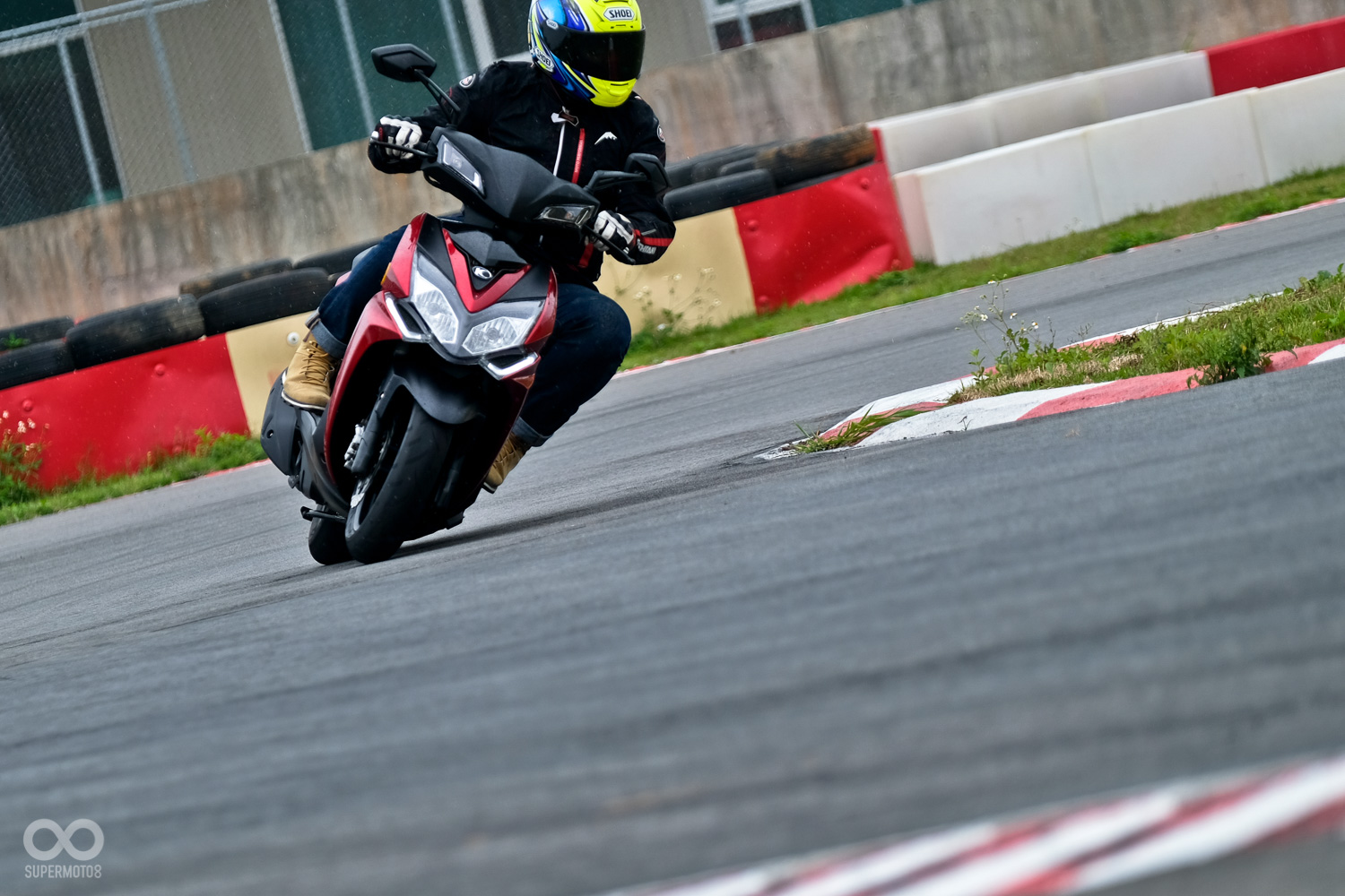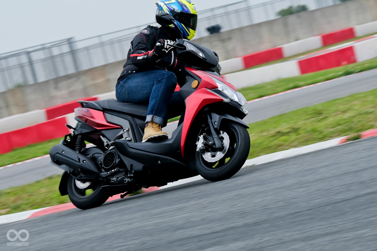 進入賽道時天空中微微飄著細雨,加上休息了一個中午,輪胎早已脫離工作溫度,在頭幾圈我自然跑得要保守些,在較為和緩的步調下Racing S 150騎起來其實是相當愜意的,大活塞卡鉗造就綿密的煞車手感,搭配上240mm的浮動碟,Q軟之餘還是能夠有著充足的制動力道,而超過40度的最大傾角也讓我能夠放心壓彎,不太需要擔心傾角用盡的問題。