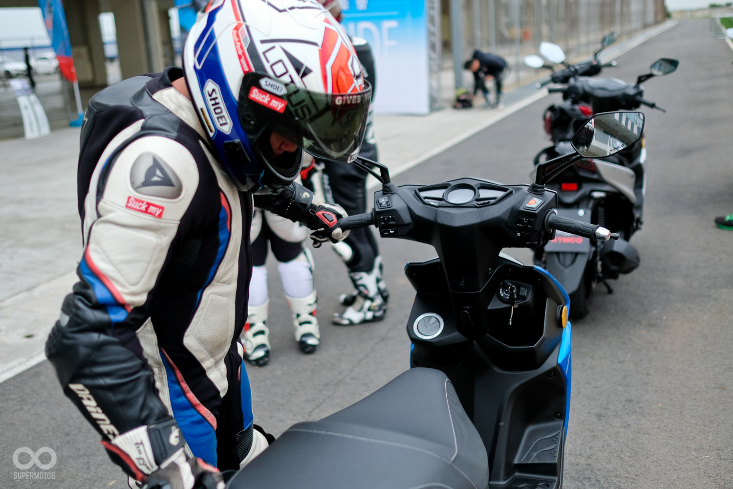 跨坐上車,騎乘三角與先前的原型車完全相,以筆者176cm的身高雙腳能輕鬆平貼地面,發動引擎,也許是新車尚未磨合完全的緣故,震動比起原型車略大一些,但運轉的寧靜度依然優異,輕轉油門駛出PIT,加速的力道扎實依舊,乾脆的輸出不毛不燥,加上沒有多餘共振碎音,清爽反倒成了我對這台車的第一印象。