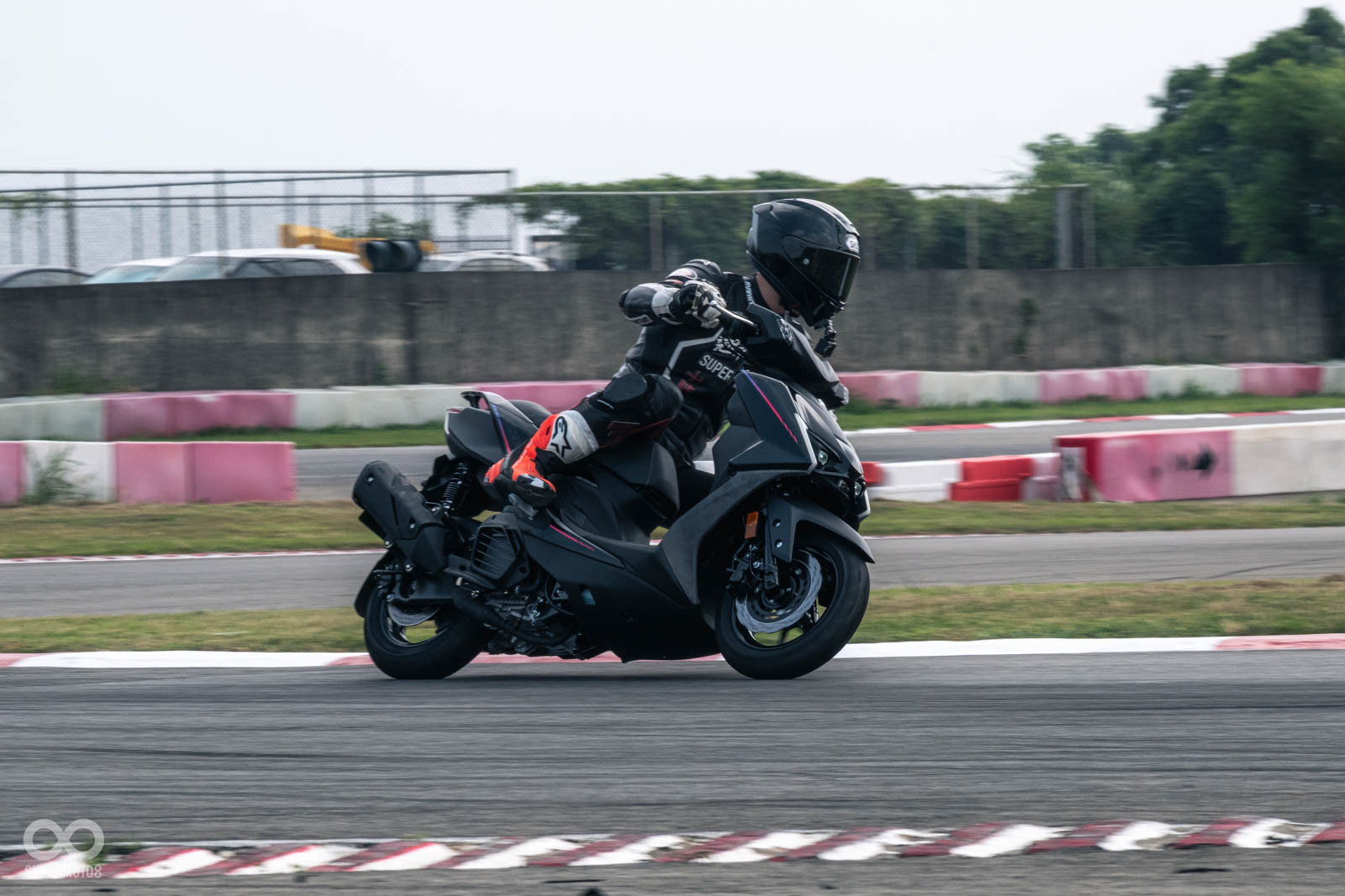 不過唯一比較明顯的特色,是加速時會有一種「像是改裝過輕量化普利珠」的輕快感。在賽道上一路拉轉至 8,000rpm 後,能明顯感受到一個動力甜蜜點,特別是在 VVA 開啟之後,引擎輸出變得輕盈而有力,會讓人想持續把轉速維持在這個區間。