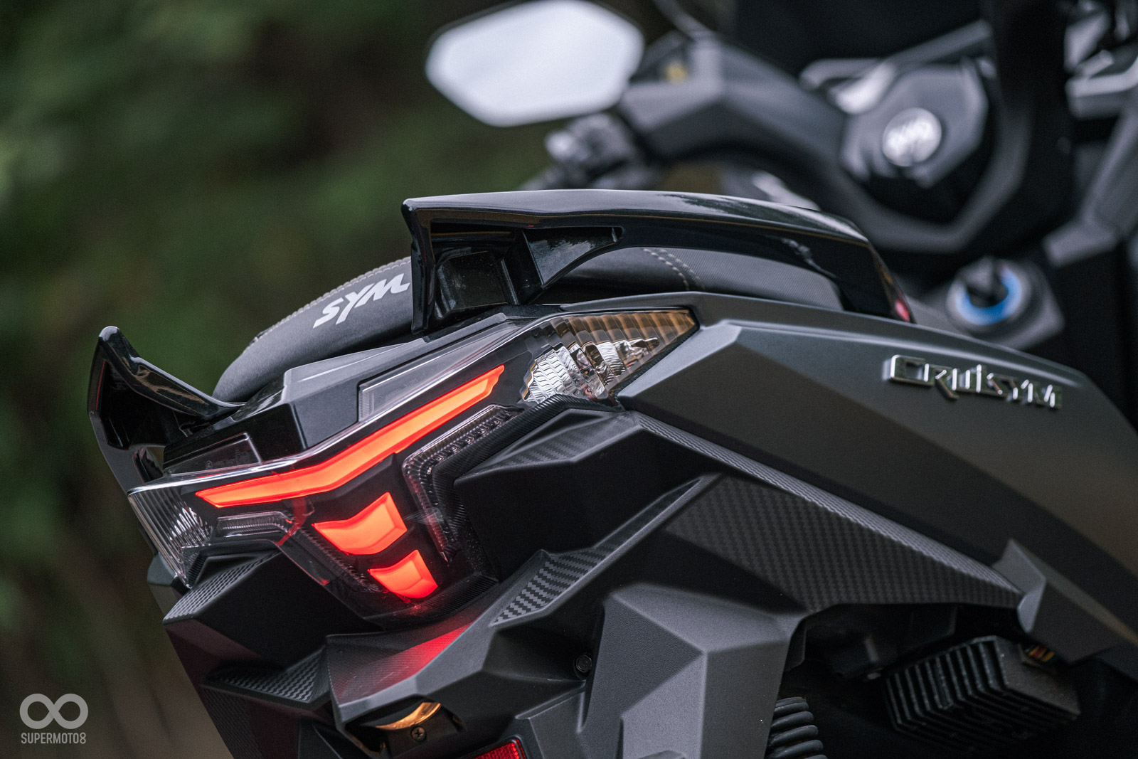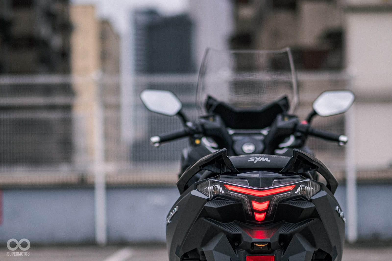 而這次改款,SYM終於將其升級為LED魚眼頭燈,不僅照明亮度與廣域投射範圍大幅提升,搭配兩側極具辨識度的箭形日行燈,車頭的侵略感與科技氛圍瞬間拉滿,車尾部分同樣精彩,導入了所謂「LED箭刃尾燈」的設計,俐落的光條造型呼應了整車「不斷前行」的生活態度,讓你在夜晚的車陣中擁有極高的辨識度。