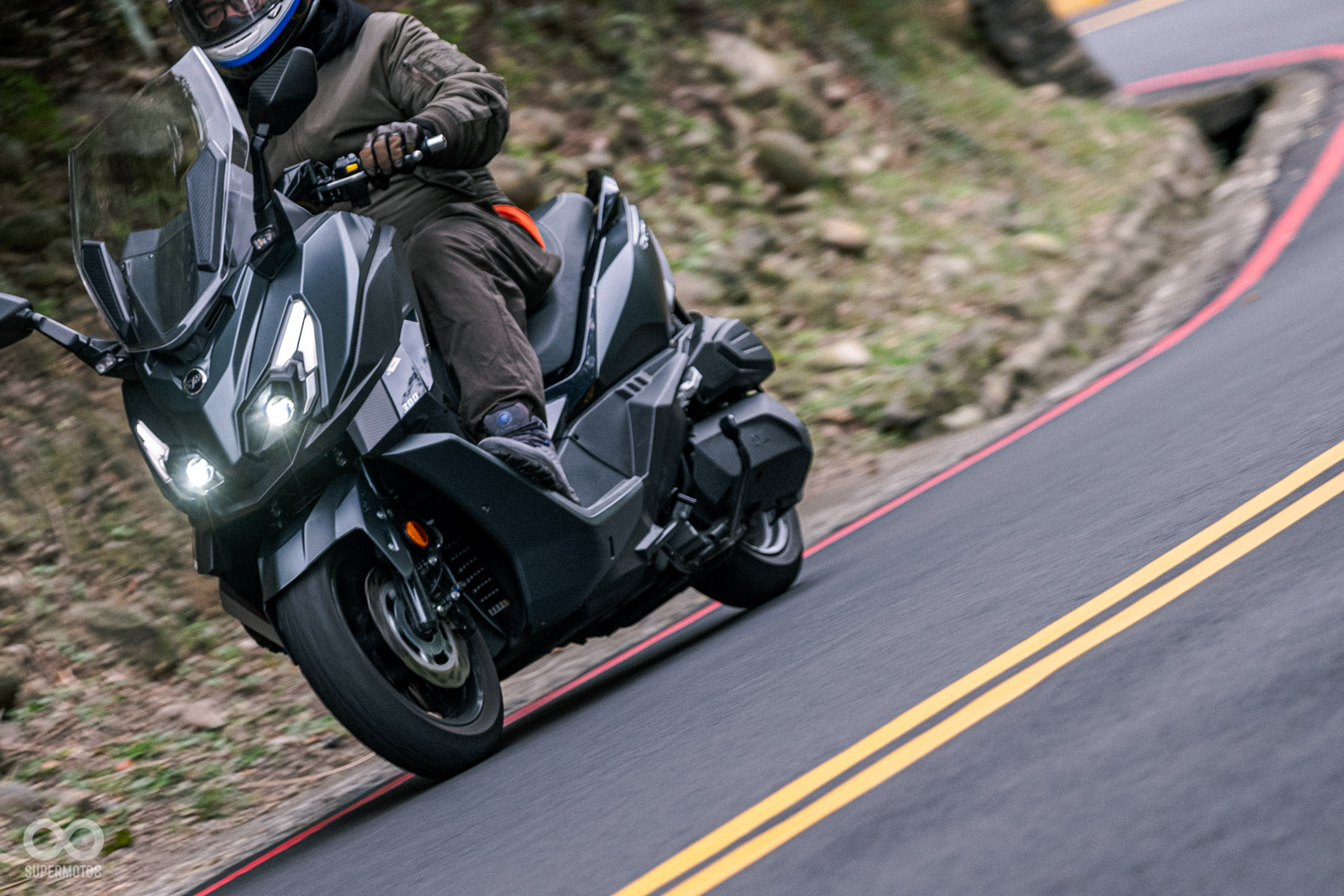 場景轉換到山路,CRUiSYM 300的動態表現依舊令人驚艷,特別是那具經過調校的引擎,擁有飽滿的低轉加速力道,即便面對較為陡峭的上坡,也僅需把油門稍微開大一些,就能感受到很穩定的加速度持續推進,加上它那靈巧的操控手感,在窄小的連續彎道中甚至給我一種在騎白牌小車的錯覺。