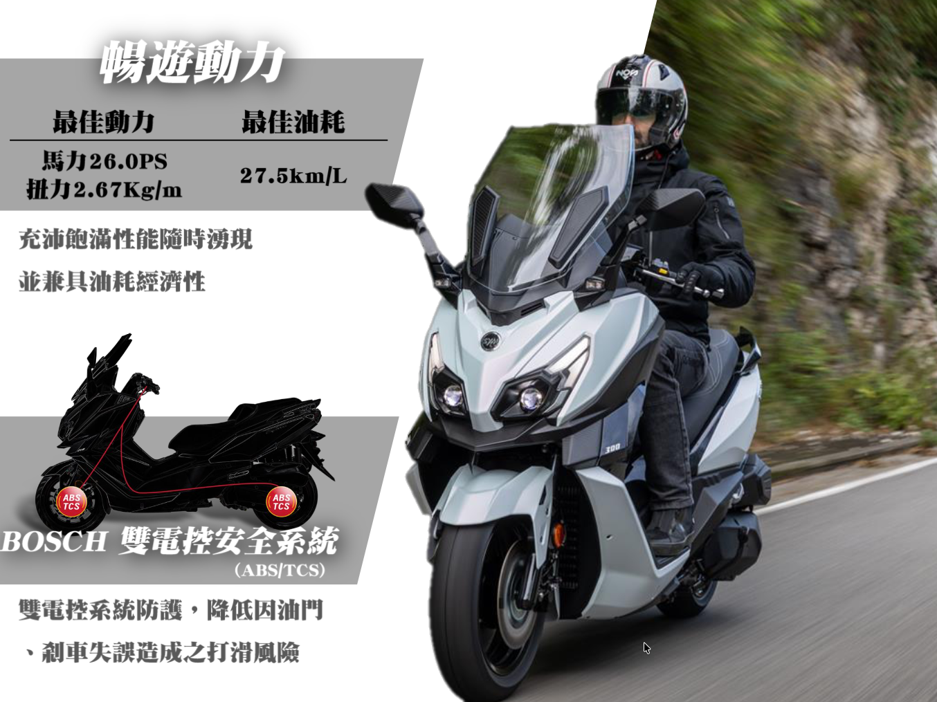 當然,這次改款最核心的價值絕對是安全性。在過去,CRUiSYM 300雖然擁有不錯的對向四活塞卡鉗制動配置,但在濕滑路面上總是讓人多了幾分顧忌,2025年式新車終於補齊了這塊拼圖,標配了BOSCH的雙電控安全系統,也就是ABS加上TCS循跡防滑,這對於台灣多雨、路面標線濕滑的環境來說簡直是救命符,能有效降低因油門或煞車操作失誤造成的打滑風險,讓騎士在安然駕馭的同時,更能享受騎乘的樂趣 。