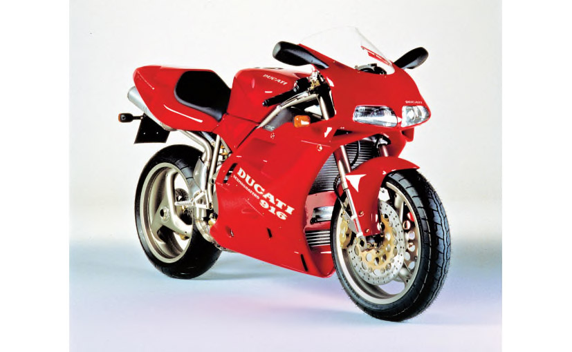 1994年Ducati攜手機車領域設計大師Massimo Tamburini,為當年的頂級跑車916設計外形,低扁的車頭燈造型配上極為戰鬥化的騎乘姿勢配置,更不用說車輛尾部的單搖臂以及緊貼騎士臀部的排氣管角度,都影響了後續摩托車設計以及Ducati自家的設計語彙。引擎動力則採用當家的L-Twin配置,916c.c.的排氣量可產生109匹最大馬力,極速上看260km/h!