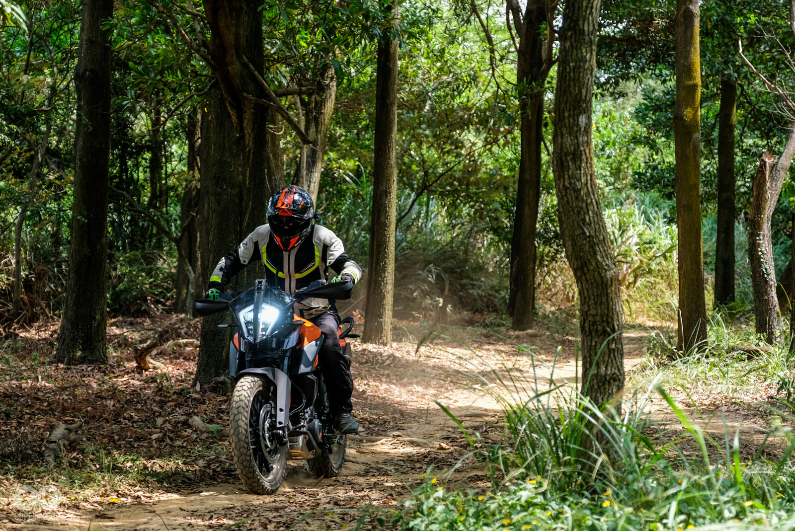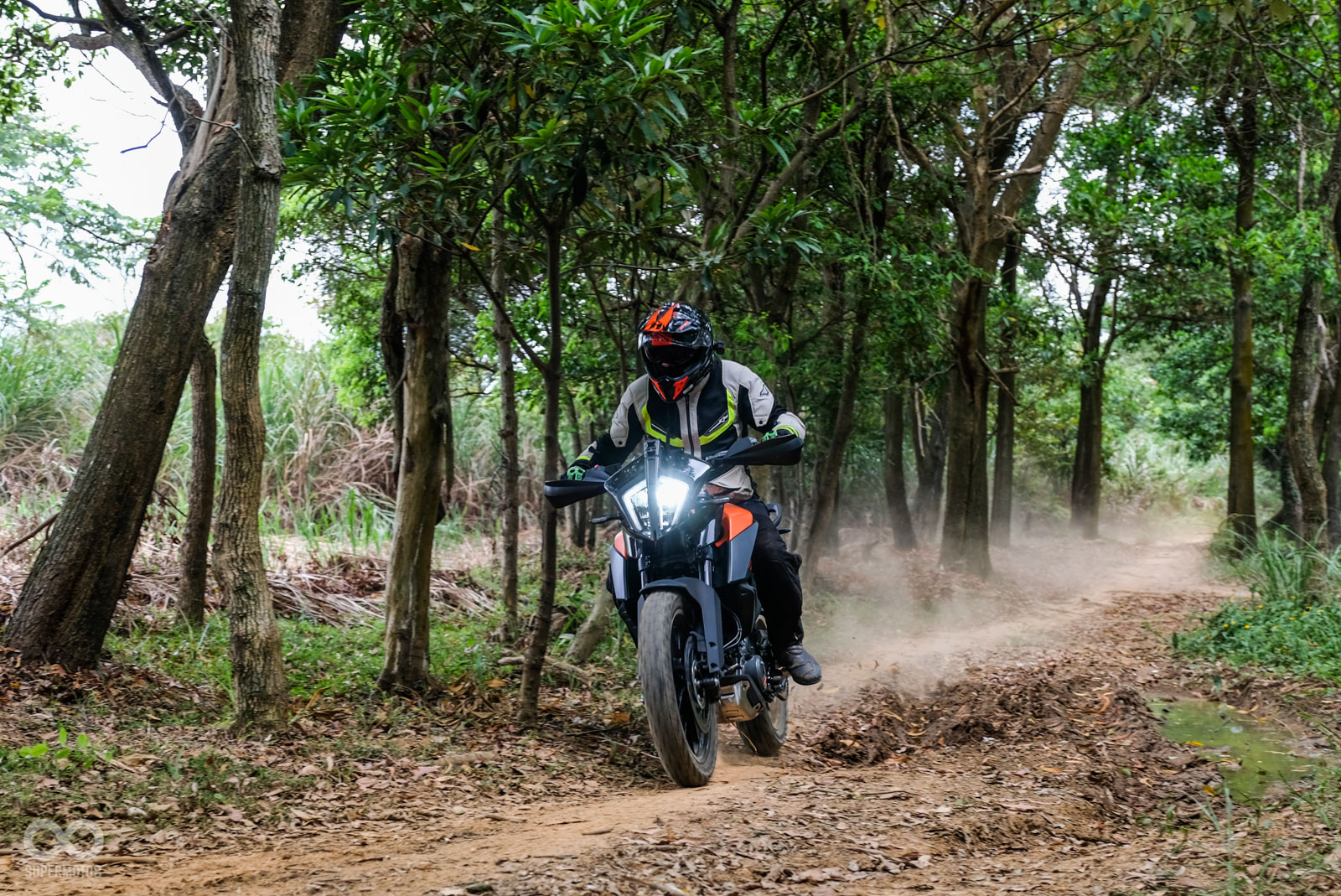 在充滿起伏的環境中,除了加長後的避震行程相當軟Q,且不會觸底外,車底距地高200mm的390 ADVENTURE更沒有在一下午的挑戰中觸碰到車底,在專業教練以及難度適中的林道中,390 ADVENTURE也讓我們毫無壓力的完成這次的試車任務。